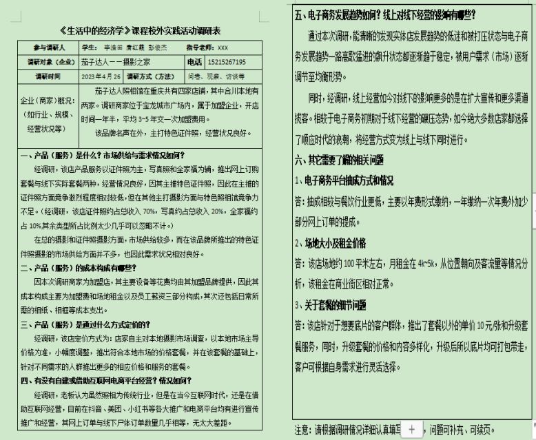 从学生反馈的调研表来看,大家调研都非常认真和深入,不但详细地完成了调研表,还根据调研企业的实际情况添加了一些新问题。比如:场地大小及租金、电商平台的抽成方式、店内产品摆放规律等,并在调研结束后借助互联网对调研对象进行了更深入的了解,为接下来撰写调研报告搜集了大量的数据信息。通过本次调研活动,同学们不但对课堂上所讲的相关理论有了更深入的认识和理解,还掌握了调研的方法,锻炼了沟通、表达、归纳总结等诸多方面的能力。从调研心得来看,同学们纷纷表示本次调研活动很有意义,也有很多收获与启发,让他们真正感受到经济学知识在日常生活中的应用。