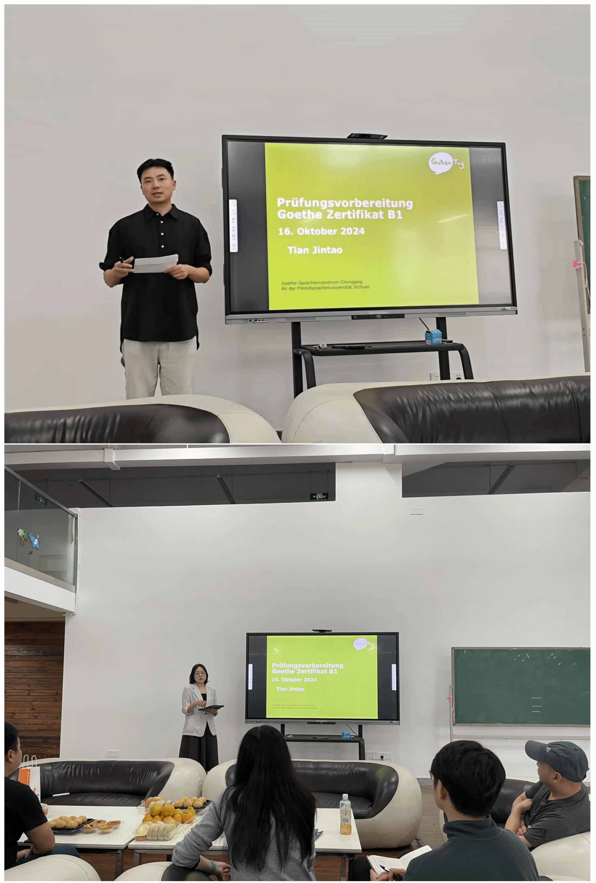 在讲座结束后,田老师还耐心回答了老师们在具体教学和备考过程中遇到的问题,提供了实用的建议和指导。参加讲座的老师们表示,田老师的讲座内容充实,内容讲解清晰,为他们提供了很多有用的信息和思路,有助于他们更好地指导学生备考歌德等级考试。