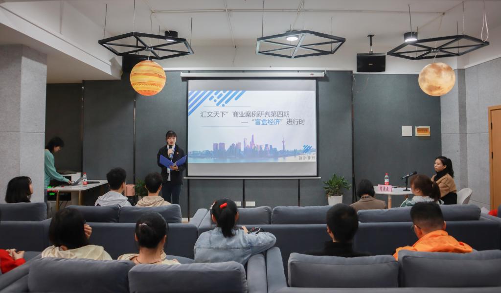 为培养移通学子商科思维,提升学生综合素质和创新能力,汇江书院与淬炼·国际商学院联合举办的“汇文天下”商业案例研判系列活动第四期——“盲盒经济”进行时于10月26日12:30在汇江书院影音活动室顺利开展,本次活动邀请到淬炼商学院陶春霖老师,为大家带来了一场有趣精炼的“盲盒”讲座。