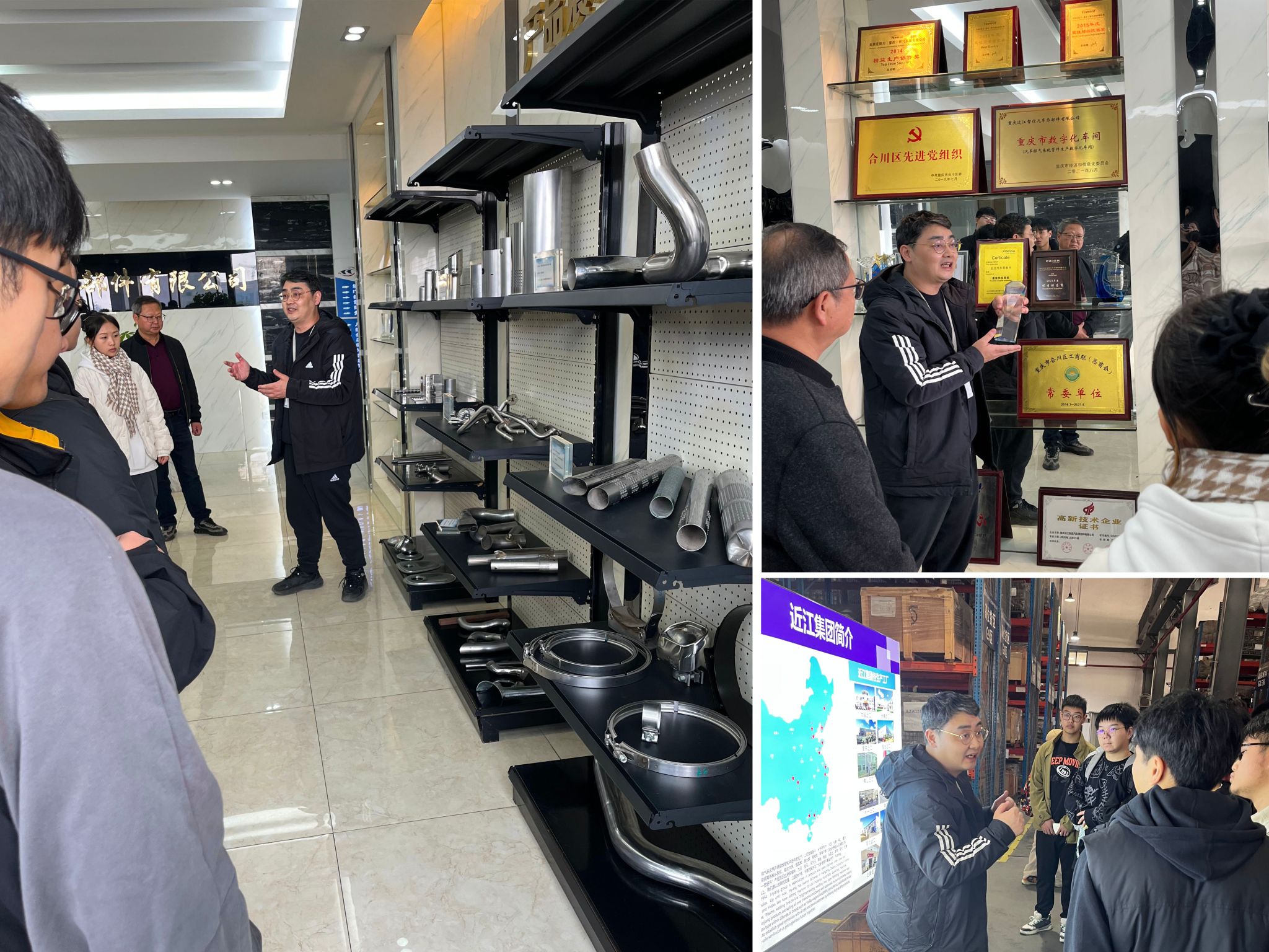 负责人周功成带领着我们近距离观摩了企业工厂和各工序的加工生产过程,从工厂的材料库到卷板区、冲压车间、制管和弯管区、焊接区等一一引导与仔细介绍。学生们也积极参与,与企业负责人、企业员工进行交流,亲身直观地了解到了企业的运营状况、冲压工艺和设备的操作过程、设备生产力情况、生产流程、生产质量和安全管理等方面的内容。