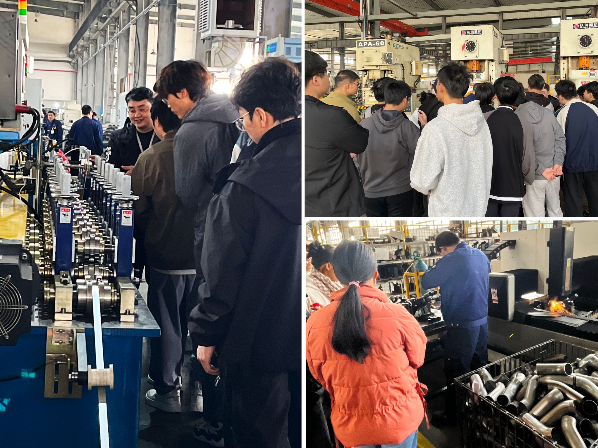 错落有致的现代化车间、井然有序的工厂化布置、自动化的生产设备让我们感受到了企业生产的实际情况。学生们通过这次体验,不仅了解到了课本中的冲压工艺、制管和弯管工艺、焊接工艺在实际生产中的应用,还拓展了视野,更加坚定了今后从事本专业工作、为国家发展贡献自己力量的决心。