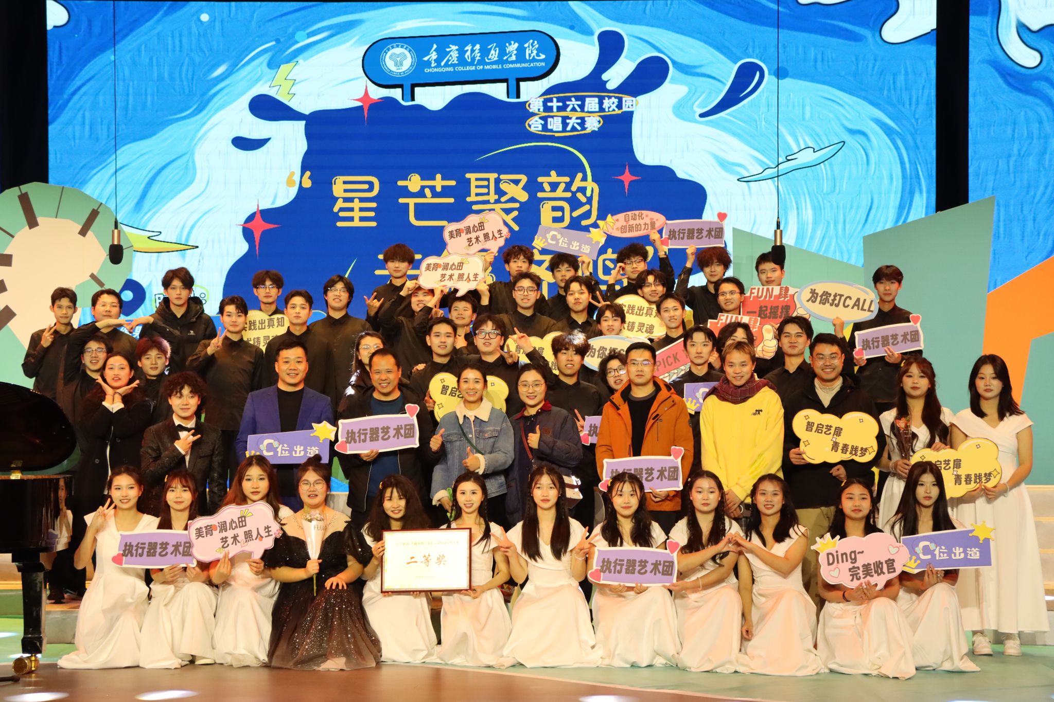 随着最后一个音符的完美落下,本次合唱大赛落下帷幕,智能工程学院也在“星芒聚韵,天籁齐鸣”第十六届校园合唱大赛中荣获二等奖!智能工程学院智士男声合唱团用他们真挚的情感,动人的歌声,为我们呈现出了视听盛宴,展现了合唱艺术的独特魅力。让我们期待下一次的相遇!