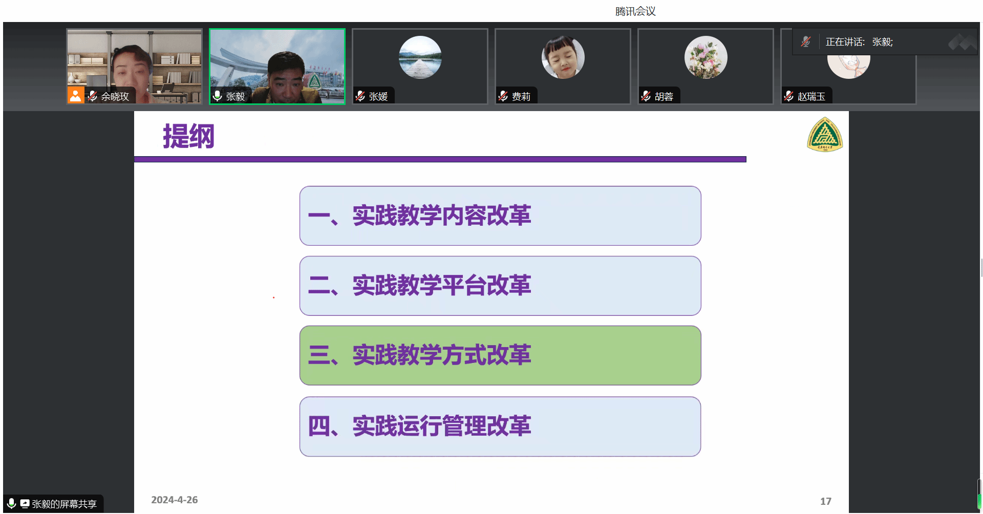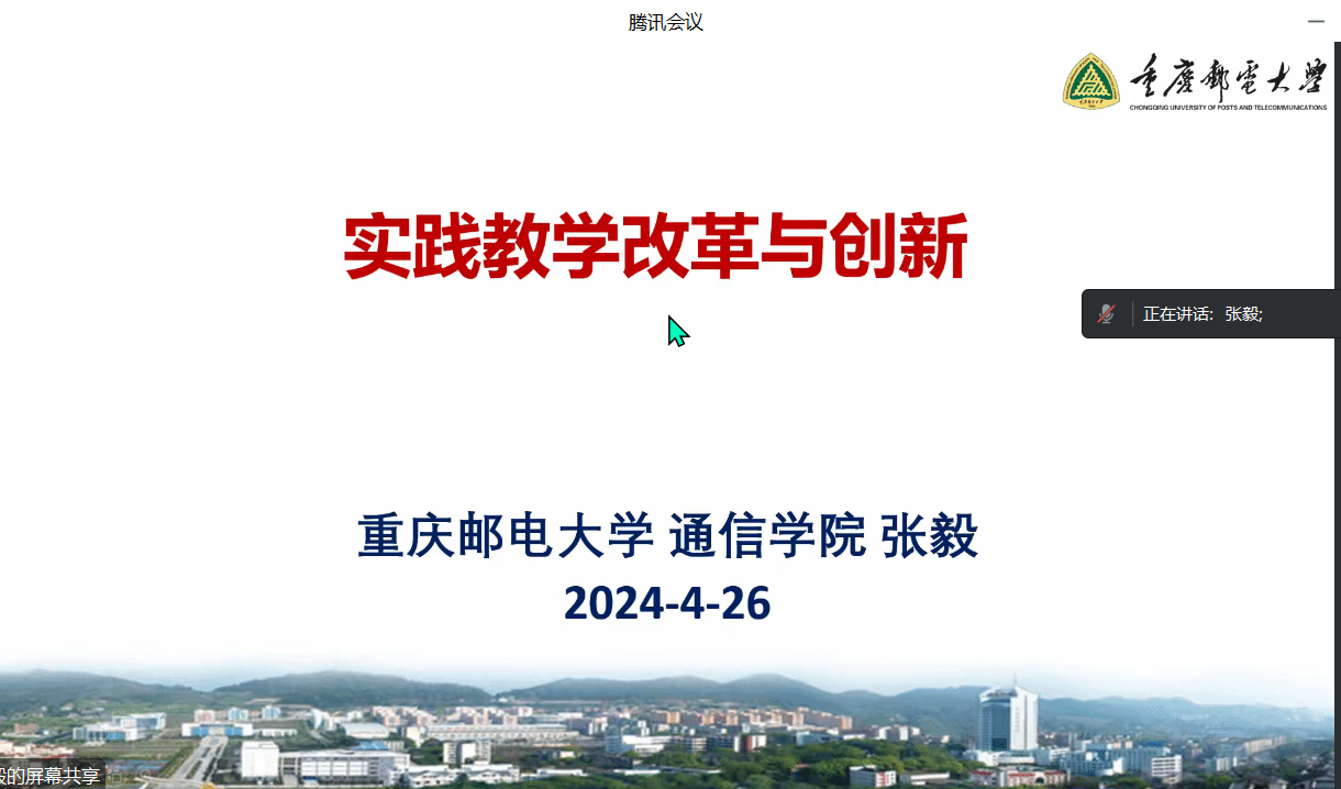 新一代信息技术创新应用教研室作为重庆市首批教学改革研究专题类虚拟教研室,从2021年9月立项至今,在课程建设、团队建设、教学竞赛、学科竞赛等方面均取得了丰硕的成果。在今后的工作中,希望能够通过跨区域、跨校间的合作与交流,进一步完善和改革实践课程体系,助力本校专业建设,为人才培养质量的进一步提升添砖加瓦。因此,特邀请重庆邮电大学国家级实验教学示范中心和国家级虚拟仿真实验教学中心主任张毅教授于4月26日开展“实践教学的改革与创新”线上主题报告,会议由虚拟教研室主任余晓玫教授主持,重庆移通学院、成都信息工程大学、重庆邮电大学相关教师参加。