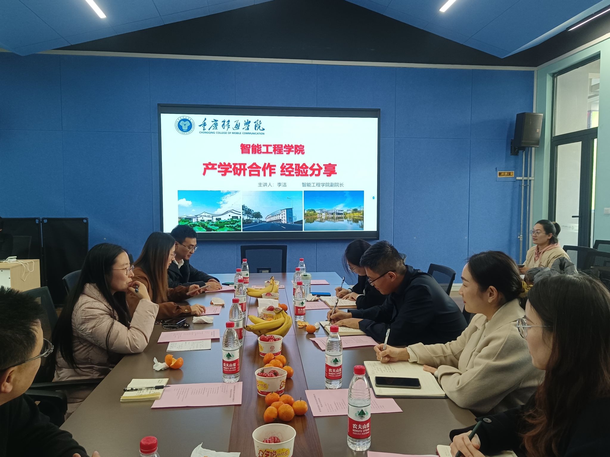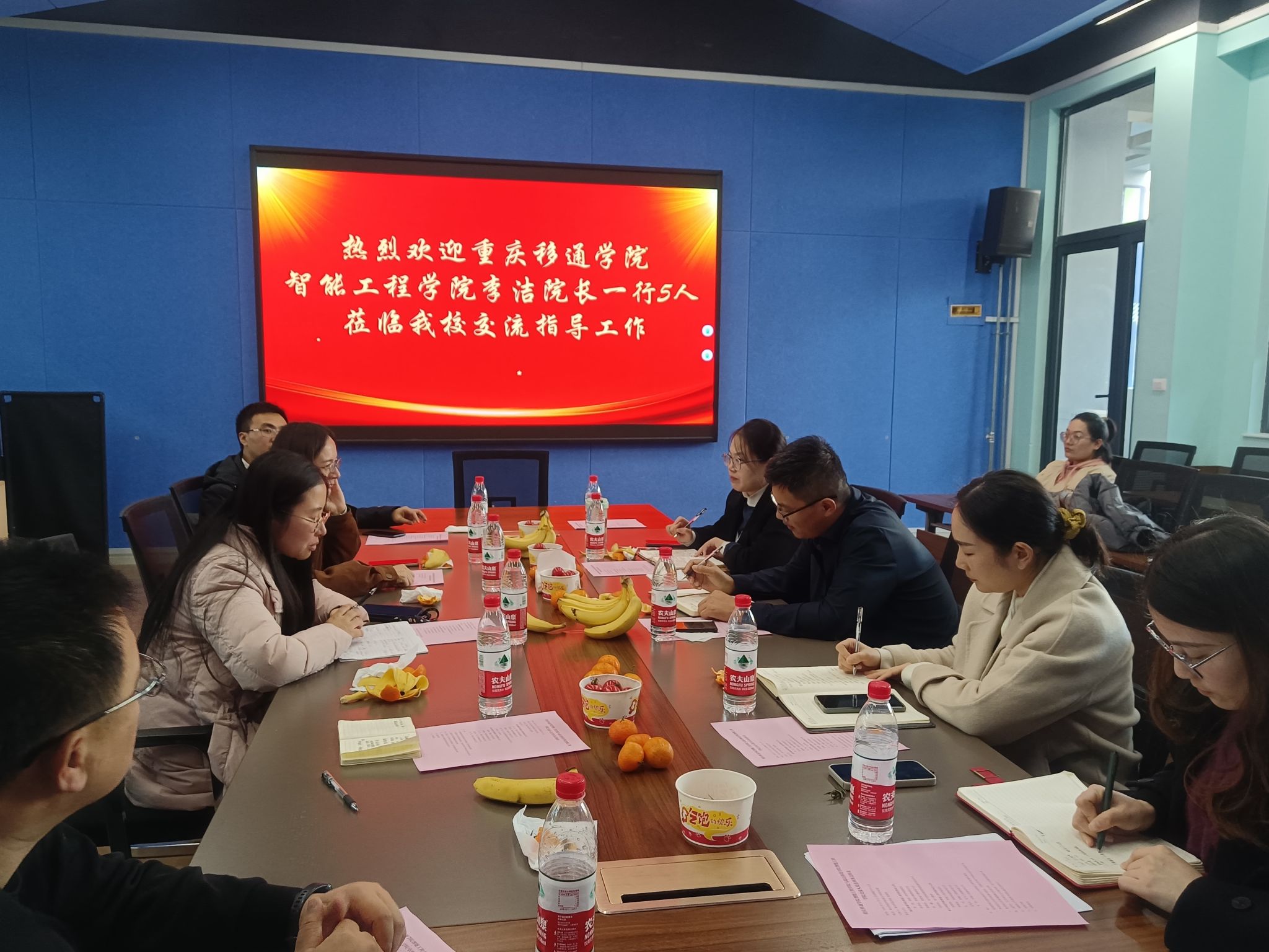 重庆移通学院智能工程学院副院长李洁、智能车辆教研室主任陈龙灿、智能电气教研室主任晁晓洁、电气控制课程群虚拟教研室负责人黄娜、智能制造教研室骨干教师张钰柱一行5人到泰山科技学院智能工程学院进行交流学习。泰山科技学院智能工程学院院长张涛然、智能制造教研室主任宋晓波、机械工程教研室主任孔丹、电气工程教研室主任孟美含、车辆教研室主任李伟热情接待我校交流团,交流会议于11月21日下午2时在泰山科技学院海右书院会议室召开。