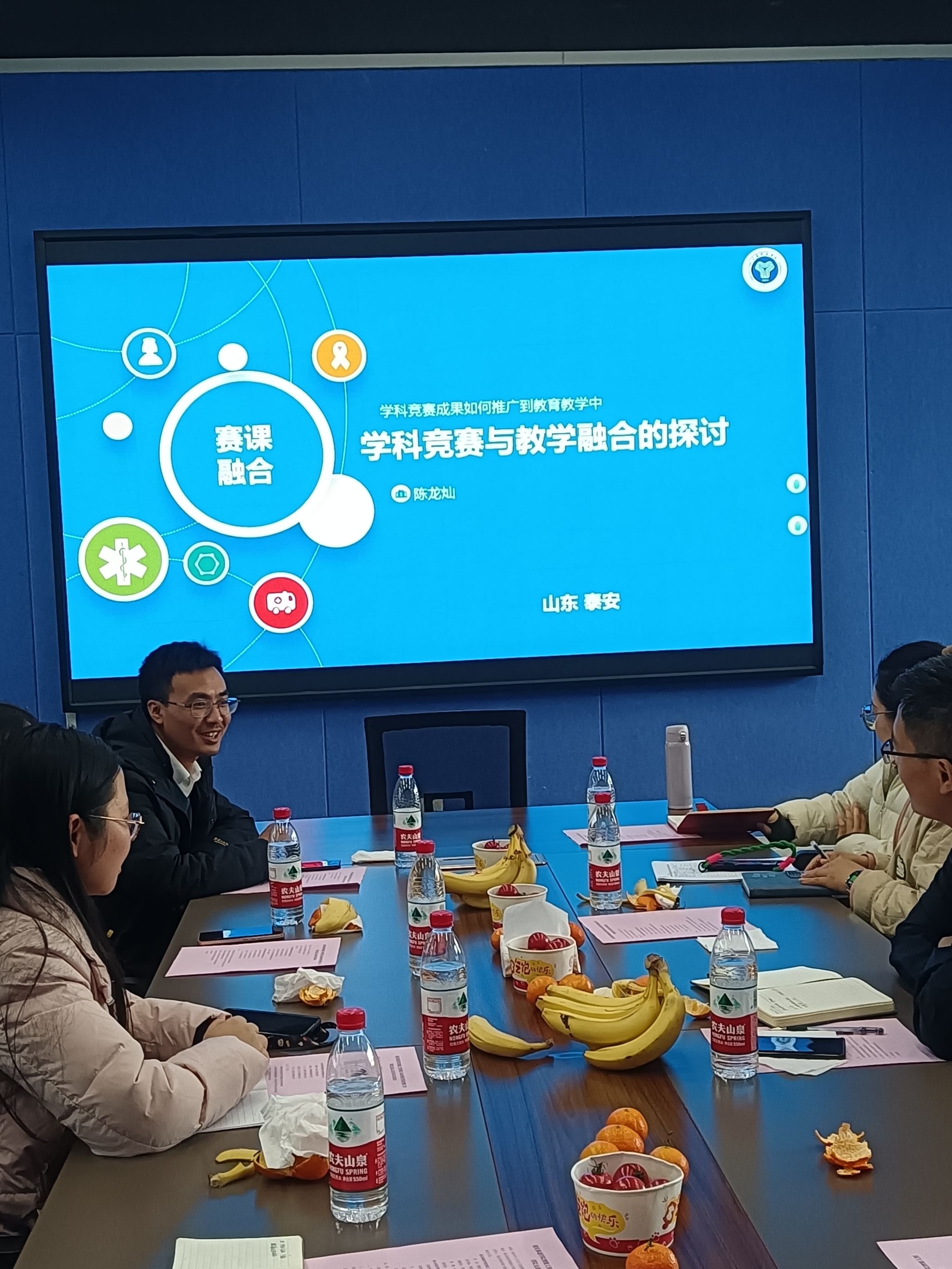 在交流会上,有着丰富学科竞赛经验的陈龙灿老师做了题为“学科竞赛与教学融合的探讨”的专题分享。他结合自己的教学实践与学科竞赛经验,介绍了如何将学科竞赛与课堂教学有机结合,通过比赛的形式促进学生的学习和教师的教学。陈老师的分享引起了与会教师的热烈反响。随后,双方就一流课程建设进行了深入的探讨和经验分享,就课程体系的构建、教学内容的更新、教学方法的改革以及教学质量的保障等方面进行了广泛的交流。