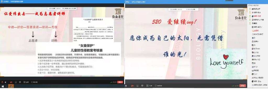 活动进入尾声,张艳老师呼吁同学们把爱传出去,让爱在路上。她也为我们介绍到国内“女童保护”公益项目。该项目以“普及、提高儿童防范意识”为宗旨,致力于保护儿童,远离性侵害。“某上市公司高管涉嫌性侵养女”案、上海市青浦区实验幼儿园男幼师涉嫌性侵女童被刑拘等实事热点新闻受到大众的关注。这类话题虽然很敏感,但避而不谈更是不良之举。正义也许会迟到,但绝不会缺席。公益不是一个人奉献,而是每个人都奉献一点。期望更多的人加入志愿活动,让祖国的花朵在阳光下幸福的成长,远离社会中扭曲的黑暗面。