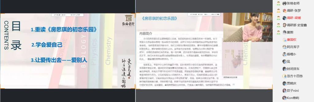 为提升书院学子文化素养,增强大学生自我保护和关爱他人的意识。5月20日下午四点,别都书院携手通识教学部开展“知行”博雅工坊之“书传百室·师生共读”阅读交流会第十七期活动。本次活动主题为“关爱儿童,我们的爱在路上”,分享嘉宾张艳老师为大家带来《房思琪的初恋乐园》,40余名同学参与到本次阅读交流分享活动中。