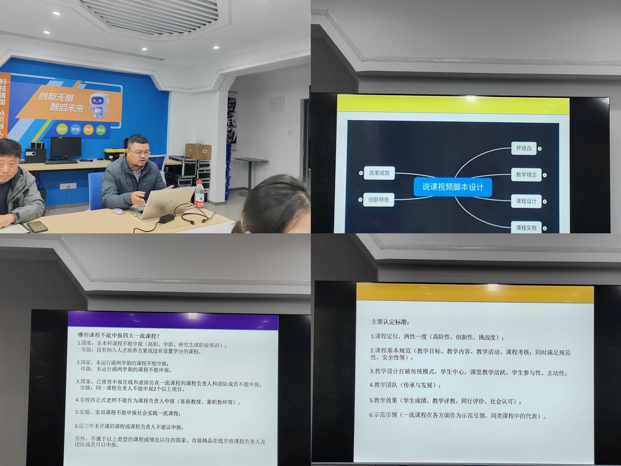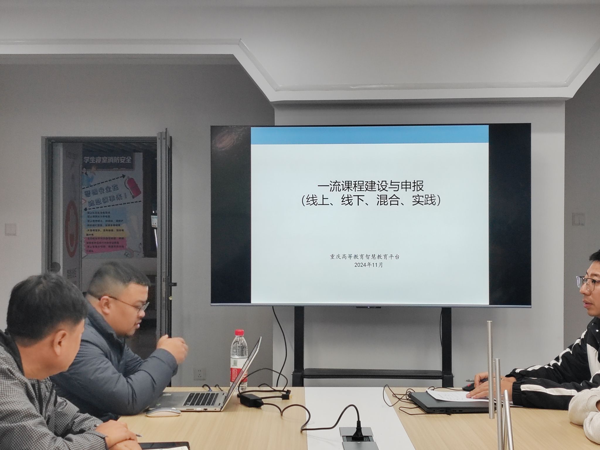 11月20日下午4点,智能工程学院在松格书院机器人创新中心召开了一流课程建设指导会。本次活动特别邀请了重庆高等教育智慧教育平台何元章经理作为主讲人,由智能控制教研室主任张姣主持,智能工程学院各教研室主任、一流课程建设团队教师参与。