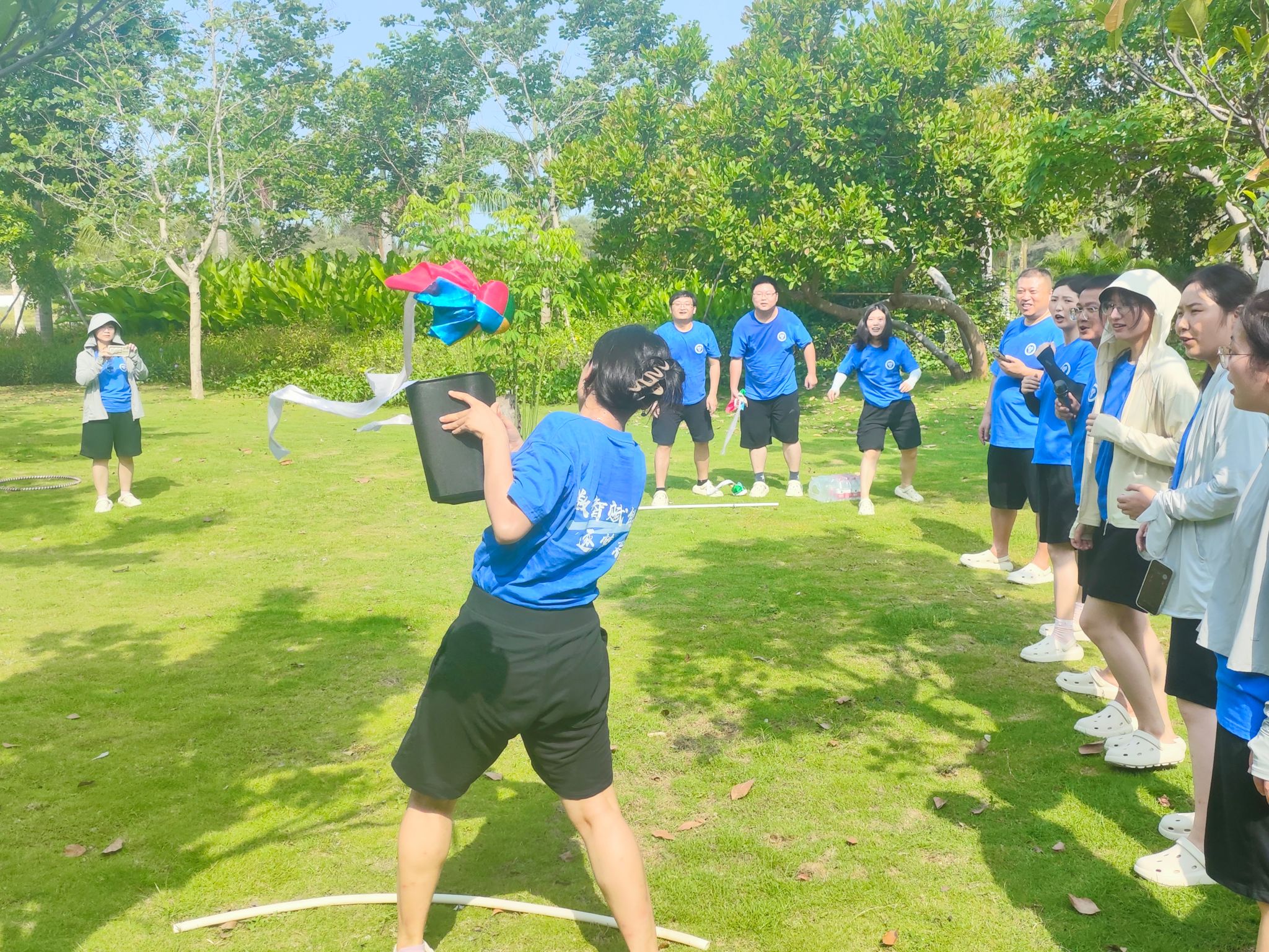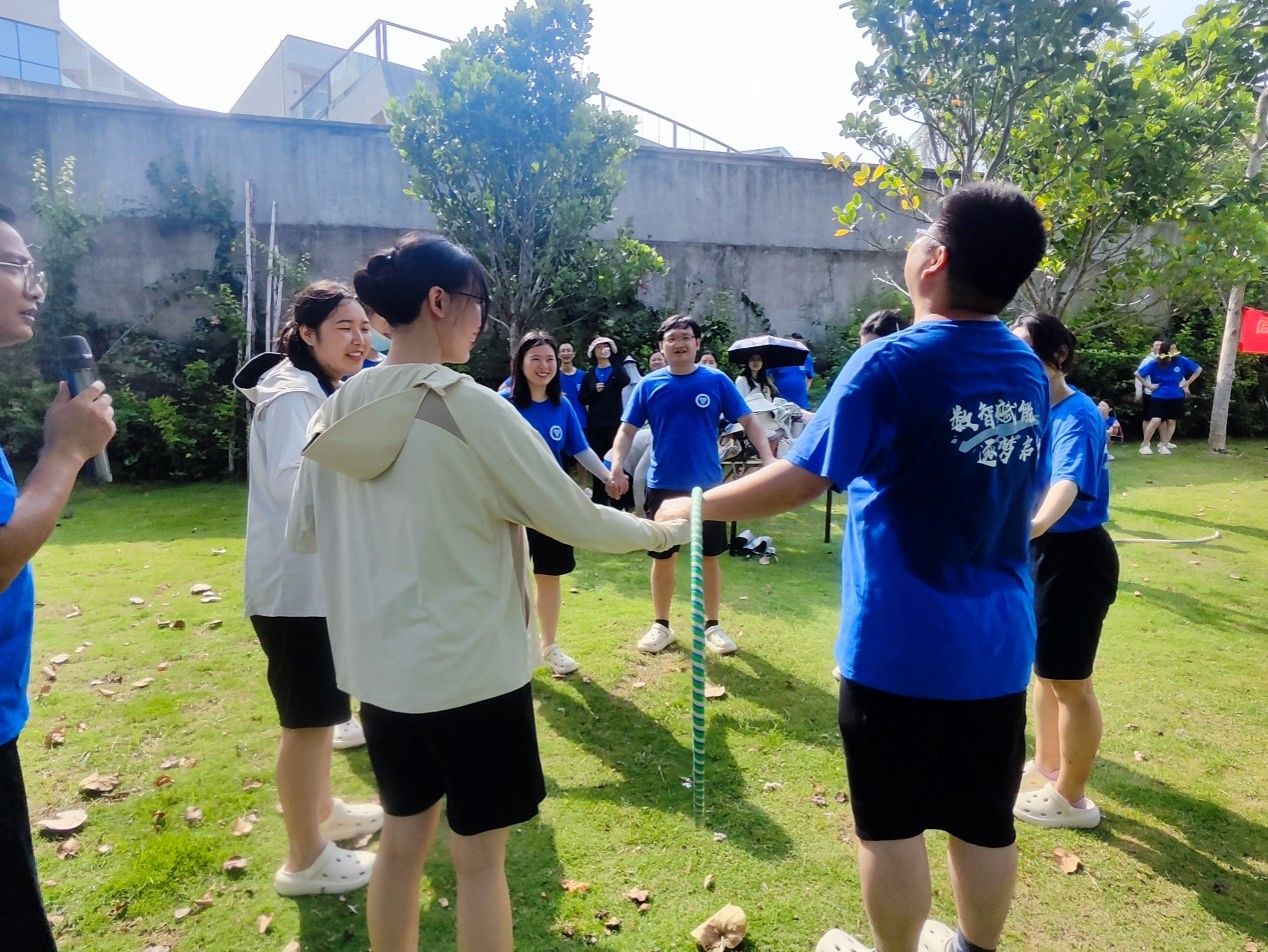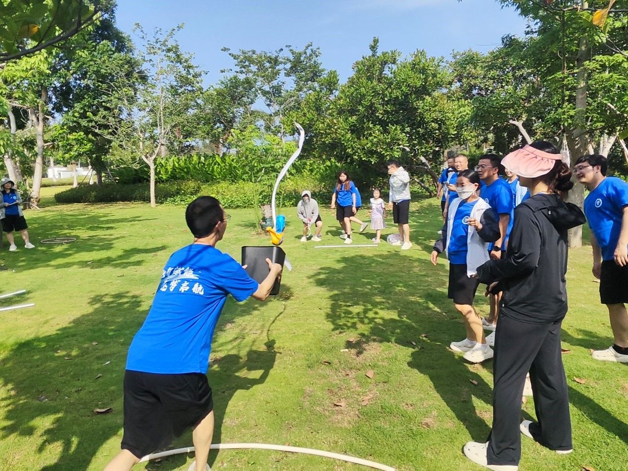 团建活动开始,主持人介绍了本次活动的目的和意义。接着,参与教师被分成若干小组,开始进行一系列趣味团建项目。第一个项目是“抛绣球”,每组成员需要配合默契,将绣球精准地抛给对方,考验了大家的协调能力和信任感。