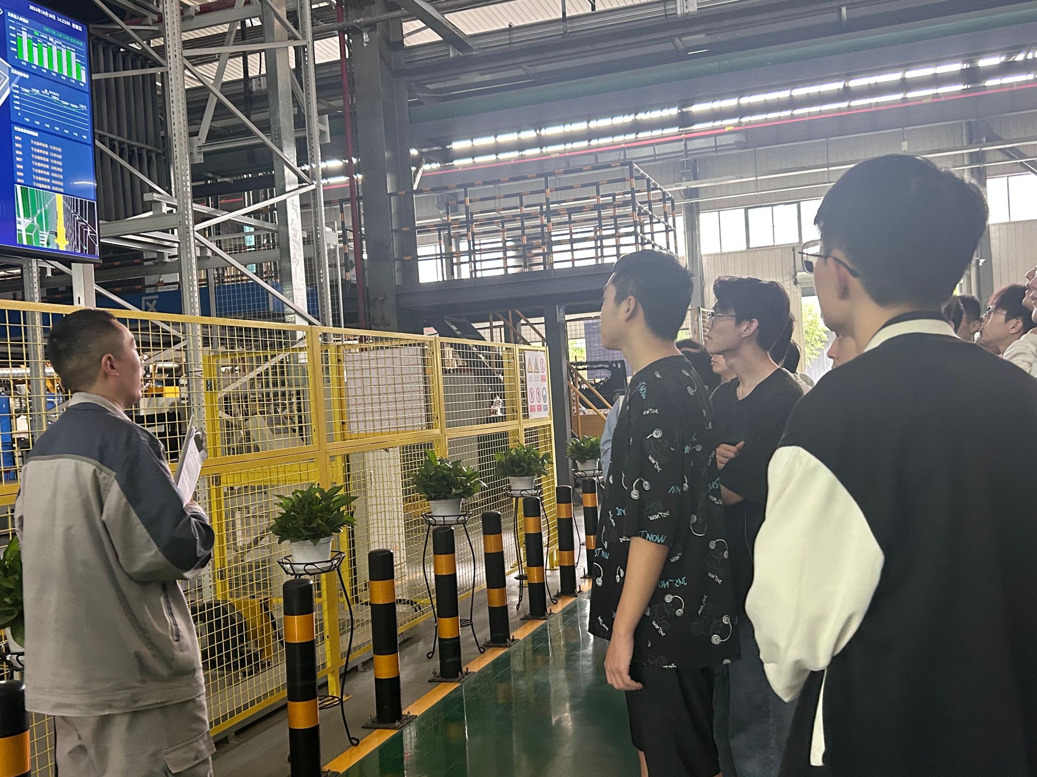 重庆平伟汽车系统有限公司技术部主任毛朝林工程师、厂区区长何俊接待了通信与信息工程学院来访师生。在毛朝林工程师的引导下,学生们参观了3号车间,亲眼目睹了机械臂在新能源汽车部件生产线上的高效运作,电池托盘、电池箱等部件如行云流水般输出,让学生大开眼界,对现代工业制造产生了浓厚兴趣。紧接着,公司厂区区长何俊带领学生走进1号车间,了解车间的数字化分析设备、智能化机器人。学生们被这些智能设备的精准与高效所折服,纷纷表示要努力学习专业知识,将来也要投身到科技创新的浪潮中,为国家的工业发展贡献自己的力量。