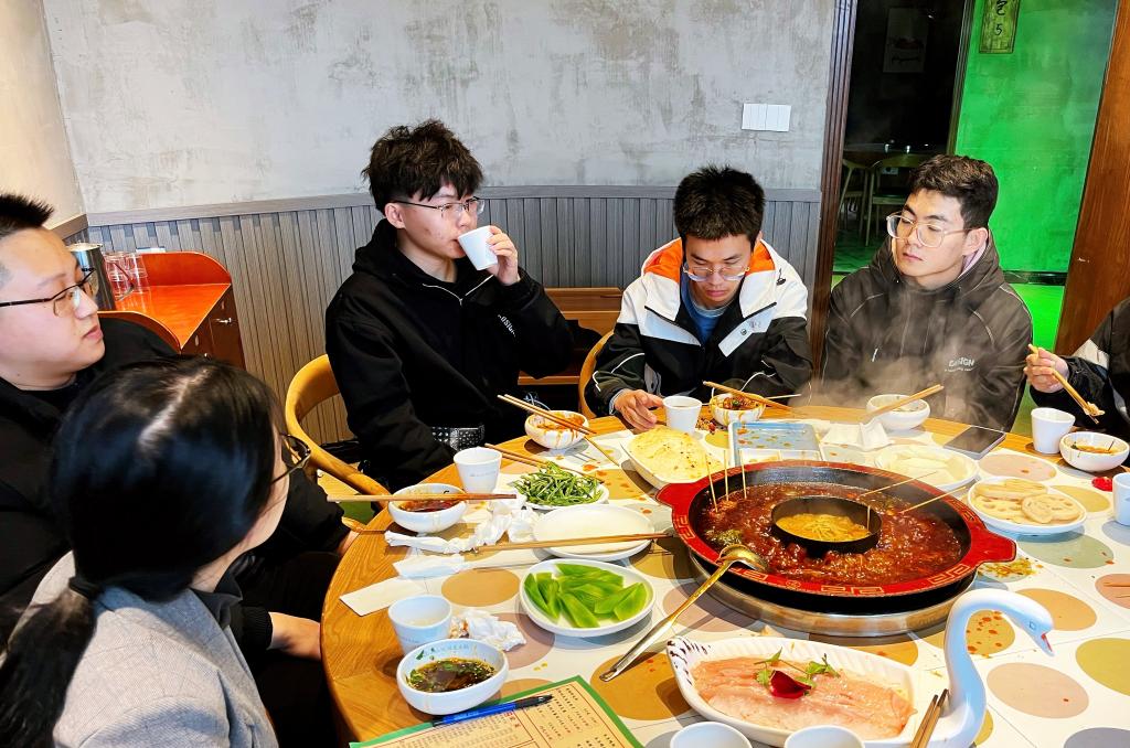 全生异科导师制是我校落实“三全育人”理念,坚持以学生全面发展为中心,促进学科交叉融合的重要举措。为了促进异科导师与学生之间的沟通交流,袁银凤老师于12月17日邀请数字经济与信息管理学院管理科学与工程类2-3班部分重庆市外的同学吃火锅,同时邀请了上一届毕业生邓超学长到场解疑答惑。
