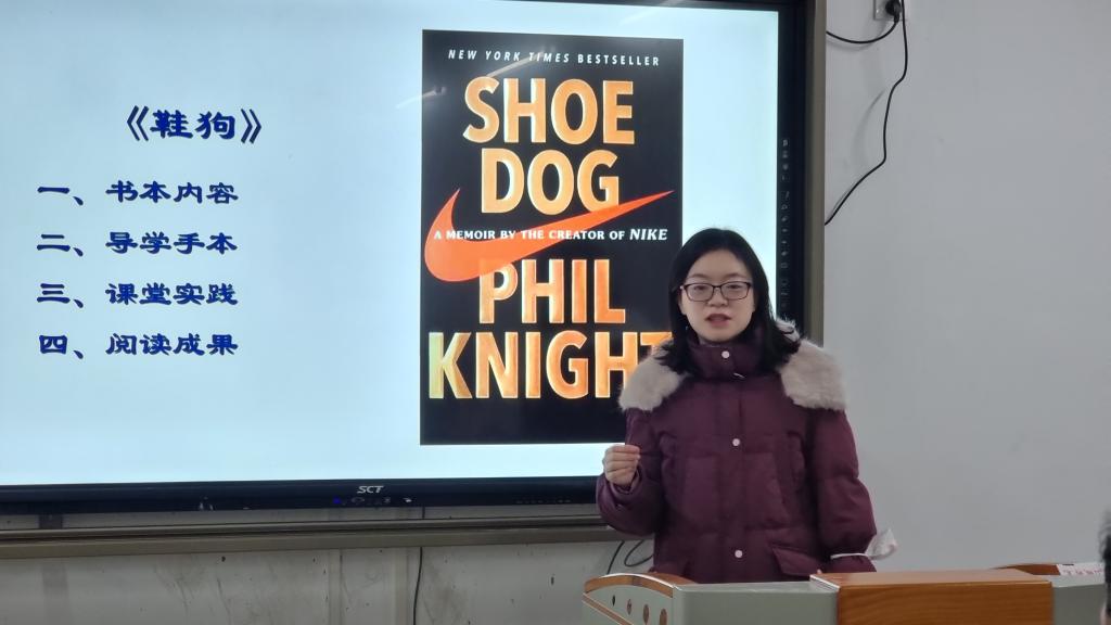 随后蒋成侠老师基于英语专业学生的大咖课程,就《鞋狗》这本书的阅读体验进行了分享。这本书可读性强,难度适中,趣味性强,充满了热血的创业过程和精神,对学生有激励作用。作为大咖课程的衍生,外国语学院组织教师编撰了《信息产业大咖传记阅读》导学手本,作为学生的阅读辅助工具,有助于学生的理解。整个课程过程中,学生自制的产品推介会视频以及英文直播带货的活动充分体现了学生的创造力,也积累了商业推广相关知识。