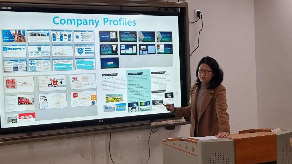 杨沁霏老师也就《信息产业大咖阅读》课程中“Airbnb”的阅读,将学生的学习实践成果和老师们进行了分享。在实践活动过程中,为了增加学生商业术语和专门词汇,杨老师带领学生们整理了Glossary Hunting表格,并设计了Group Presentation,Business Interview,Company Profiles,Company Brochures,Product Launch,Reading Report等丰富多彩的实践活动。