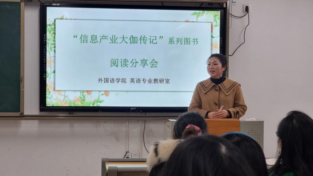 12月15日下午,外国语学院英语专业教研室全体教师在天渠书院106举行了“信息产业大伽传记”系列图书阅读分享会。