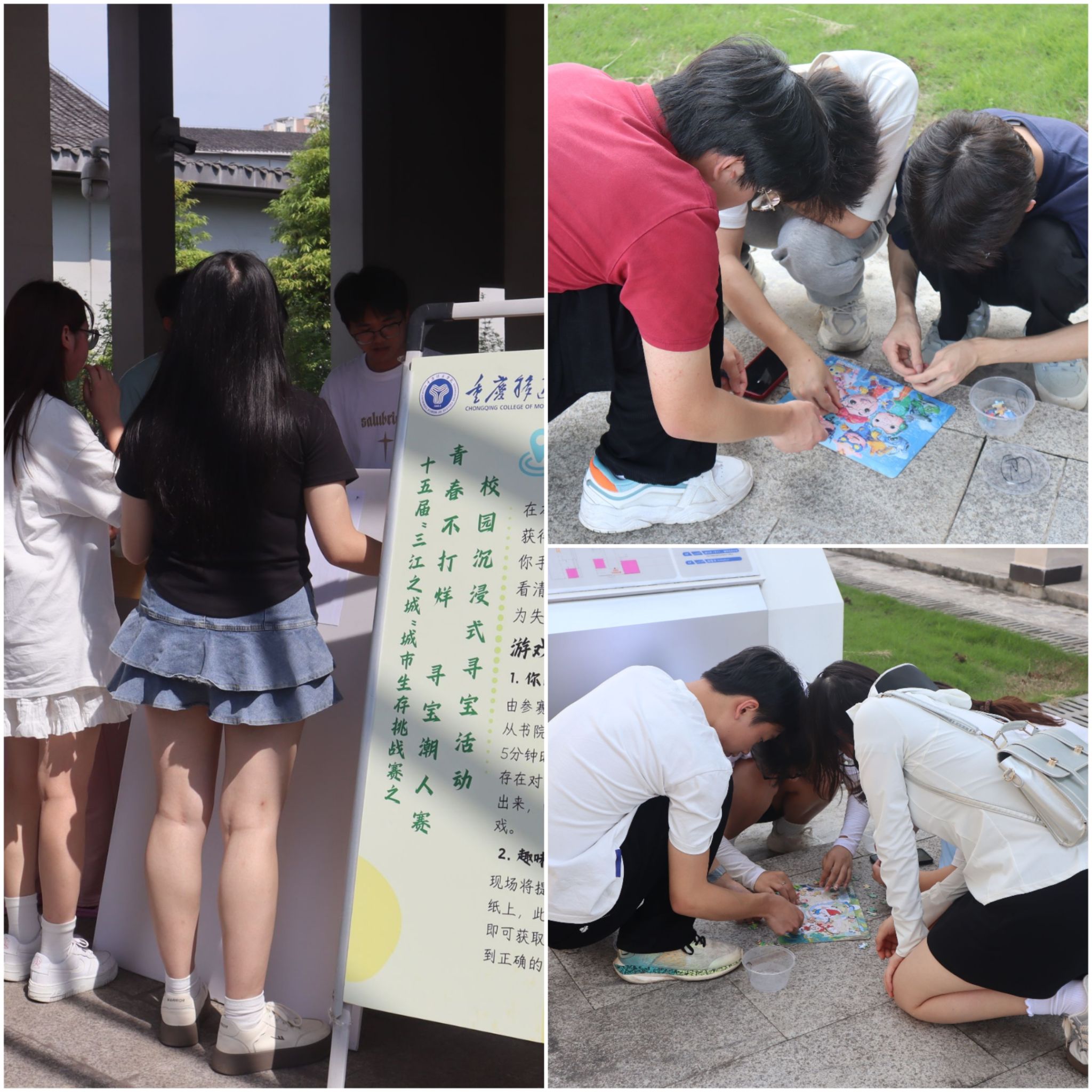 2024年5月15日,由智能工程学院与外国语学院联合举办的第十五届“三江之城”城市生存挑战赛之“青春不打烊·寻宝潮人赛”校园沉浸式寻宝活动在重庆移通学院北校区隆重举办。本次活动主要通过开展校园寻宝活动,为校园生活增添一种有趣的互动体验,同时参与者们可以在游戏中锻炼自己的团队合作能力、解決问题的能力,也能增进与同学之间的交流和友谊。