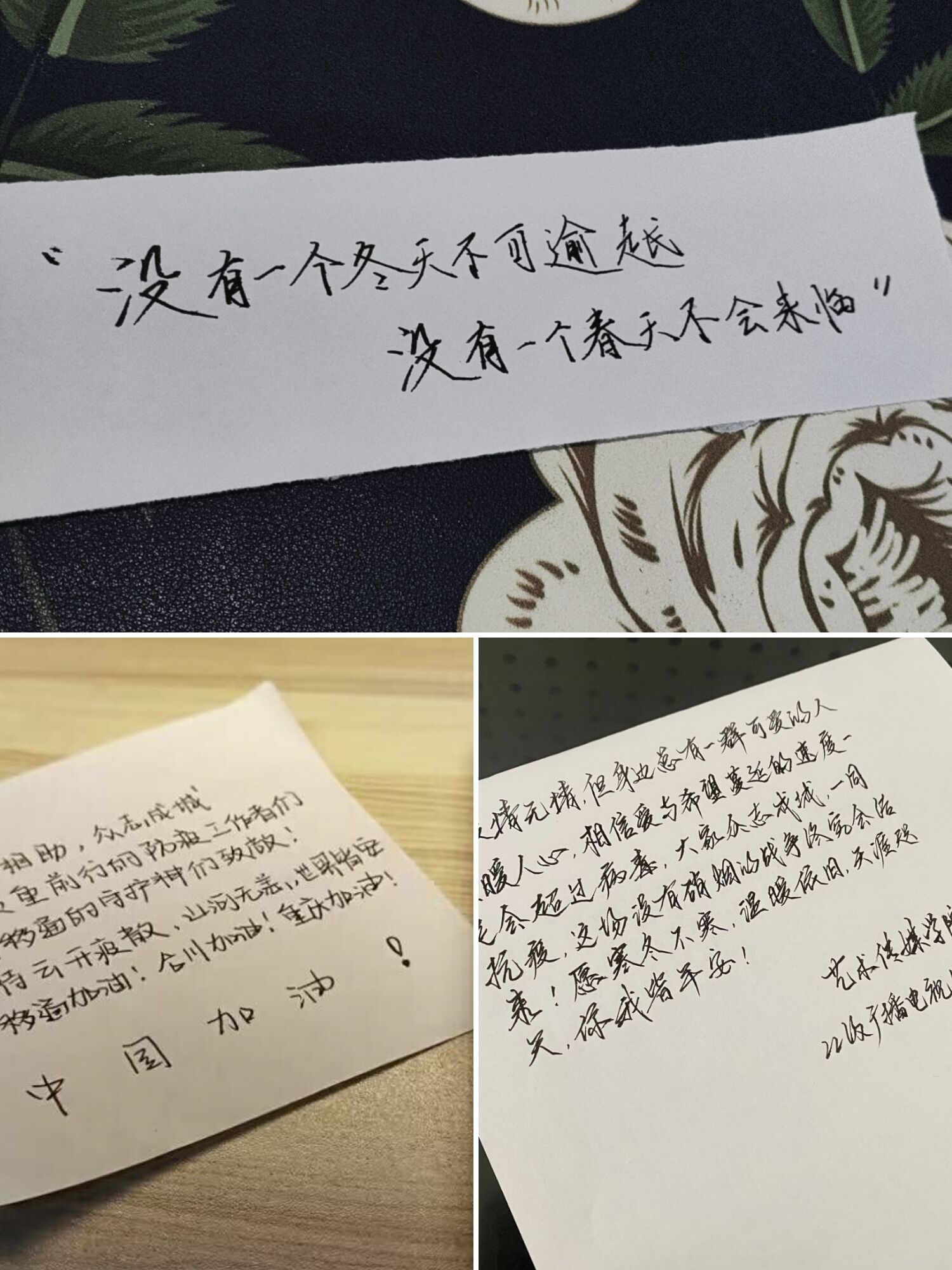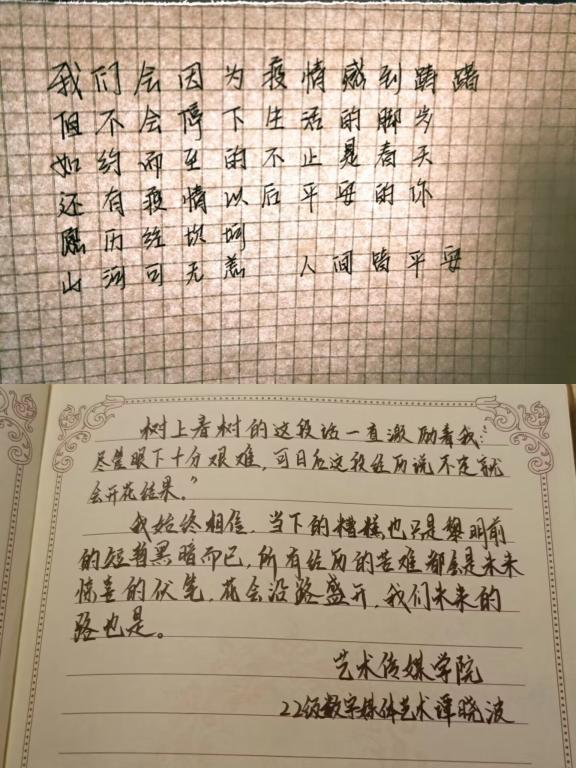青马学子们书写暖心文字,表达出内心的真情实感,通过文字的力量互相鼓励、打气。挥别疫情对我们的负面影响,传递冬日温情、爱与希望。
