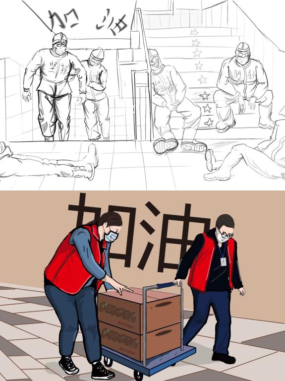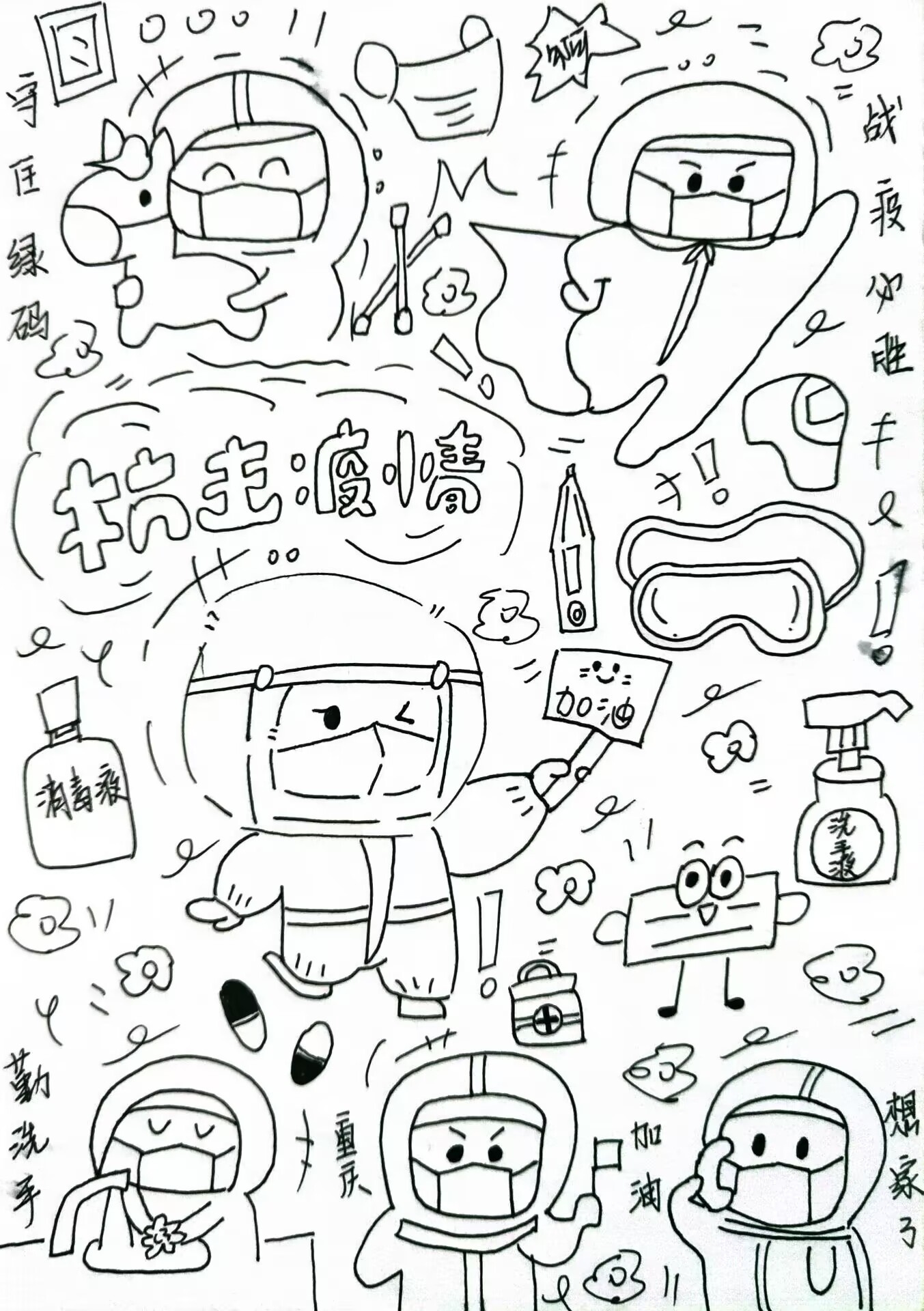 结合当下疫情形势,青马初阶班的学员们围绕“共抗疫情”,以绘画的方式展现疫情当下令人动容的瞬间,驱散疫情的冰冷,重拾青春活力,坚定对未来校园生活的美好憧憬。他们带着对始终坚守在抗疫第一线的防疫工作者们的敬畏之心、感动于学校和老师们的关怀之情,运用自己灵巧的双手绘制卡通画。