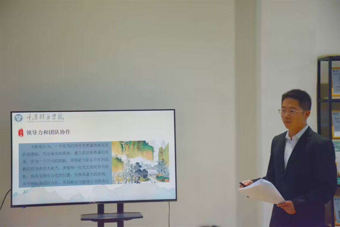 主持人详细介绍了评选的实施方案和评分细则,请各位评委根据选手的演讲内容、语言表达、精神面貌以及读书心得等多个方面进行打分。来自大一至大三的13名决赛选手通过PPT展示或视频的方式,分享了他们阅读的主要内容、阅读心得与收获。饶林同学带来了《娱乐至死》一书,阐述了“现今娱乐至上的时代下,我们该如何正确运用媒体,认识当下信息失真、快节奏、碎片化、富于表面等现象的出现”的这一观点。罗锦宏同学介绍《任正非传》一书的体会:这本书时刻在诠释着这华为传奇人物几十年的发家史——从家境平困中走出,再到军旅十四年的生活中的蜕变。初次经商的亏损并不会将他打到,更是在面对外国制裁中屹立不倒。在读这本语言朴实而直接的书时,让人陷入思考的往往是作者在实践的岁月中所凝结出的智慧。黄恩祈同学分享了《美国普罗米修斯:奥本海默的胜利与悲剧》一书:一个冒着毁灭世界的危险来拯救世界的人物传奇,最后却萧寂落幕。让人不禁思考,原子弹的出现到底是对还是错?圣火带来到底是罪还是罚?科技与伦理责任到该如何平衡?其他同学介绍了《任正非传》《星火燎原》《人性的弱点》等书,通过展现书本丰富的内容展示和个人思考,为在场师生留下了深刻的印象。