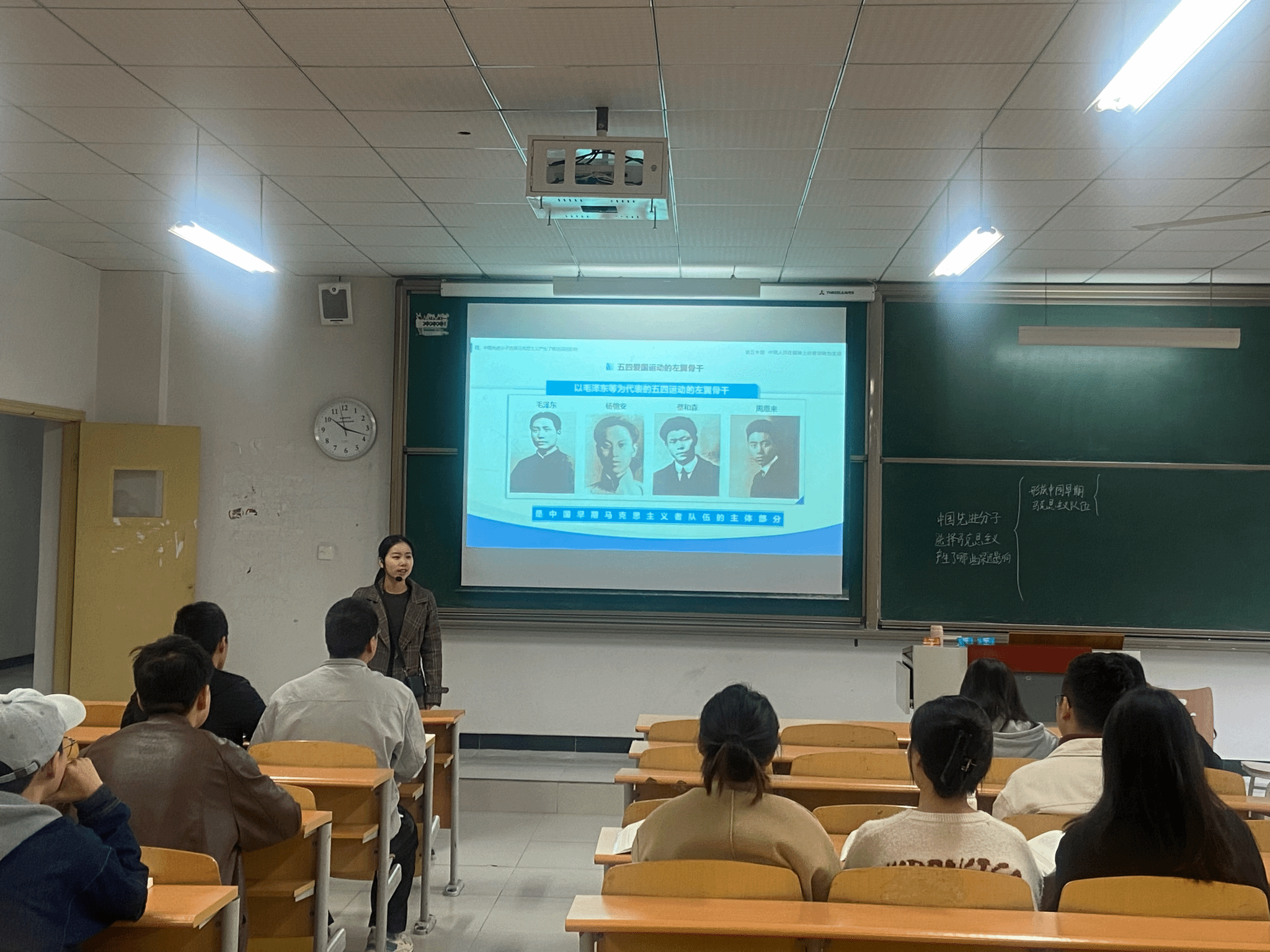 本次活动由龚魏锌老师讲授《中国近现代史纲要》第四章第二节“马克思主义广泛传播与中国共产党诞生”的相关内容。在授课过程中,龚老师对本节内容进行了较为全面的讲解,讲述了早期马克思主义者的队伍,分析了早期马克思主义思想运动的特点,整个教学条理清晰、语速适中、教学案例丰富、板书设计合理。龚老师在教学过程中还注重调动学生的积极性,让学生主动分享了青年毛泽东、周恩来、蔡和森等中国早期信仰马克思主义的人物故事,教学氛围良好,较好地完成了教学任务。