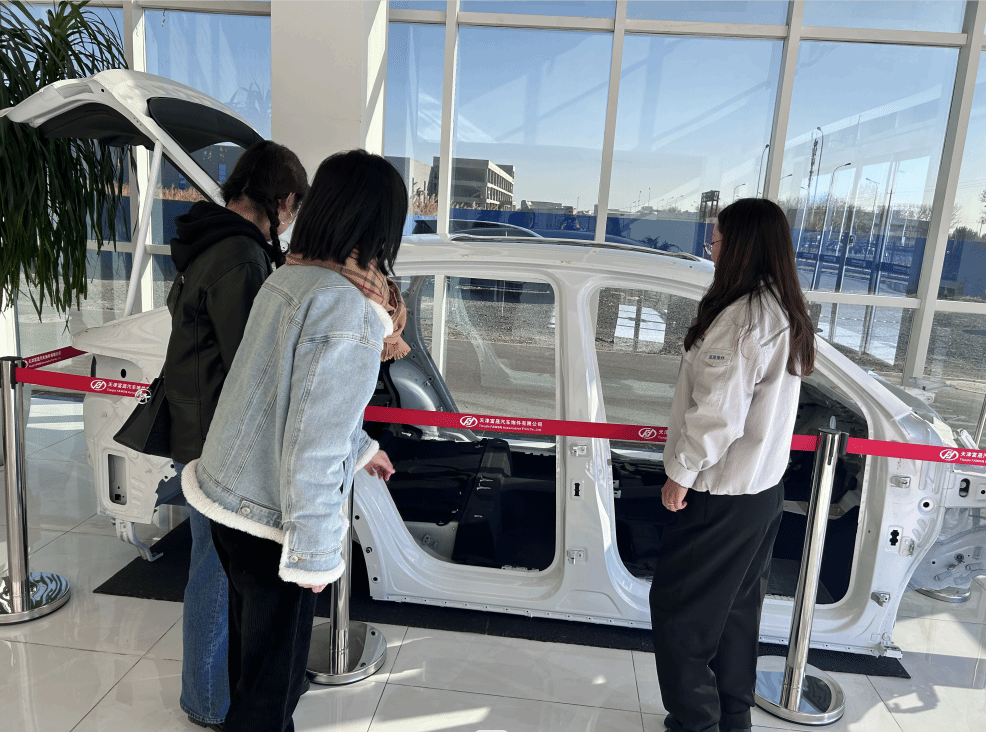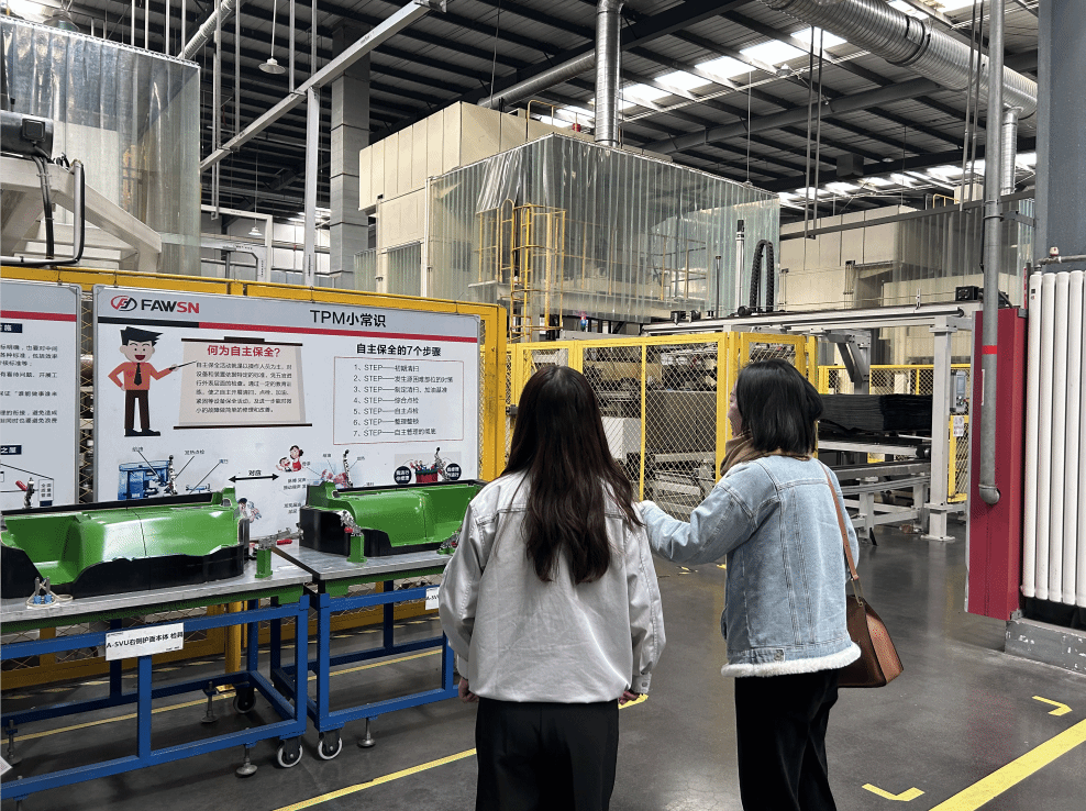 公司负责人首先介绍了公司的发展历程、主要业务以及与外语类相关的合作项目。随后,由公司员工带领两位老师进行车间实地参观,两位老师亲眼目睹了汽车内饰件的生产线和工艺流程,深入了解了汽车饰件的制造过程和质量控制标准。每一个细节、每一步流程,都映射出企业对技术的追求和对质量的严苛把控。这种对工作的敬业精神和追求卓越的态度,也正是学校人才培养中的重要任务之一。