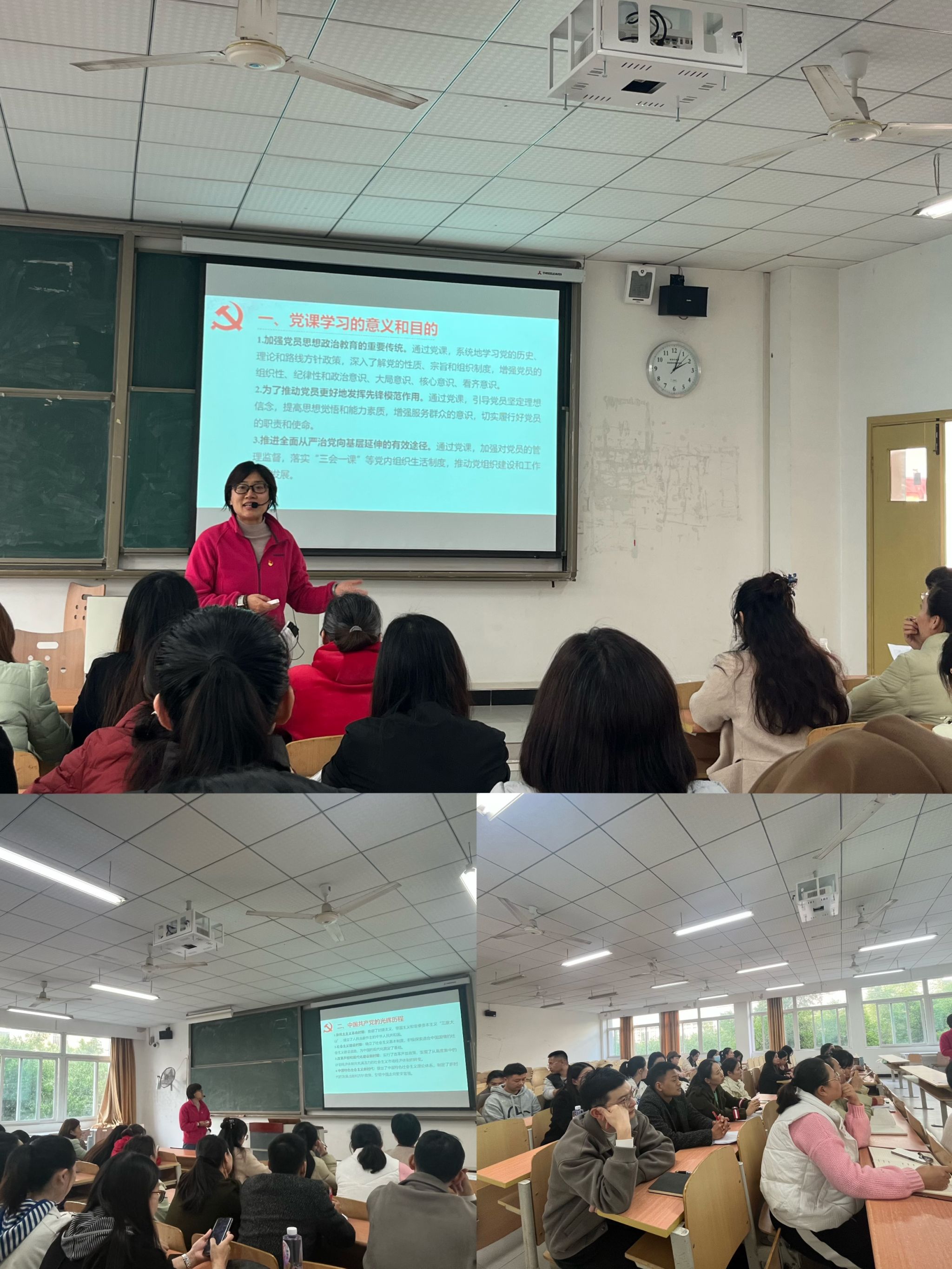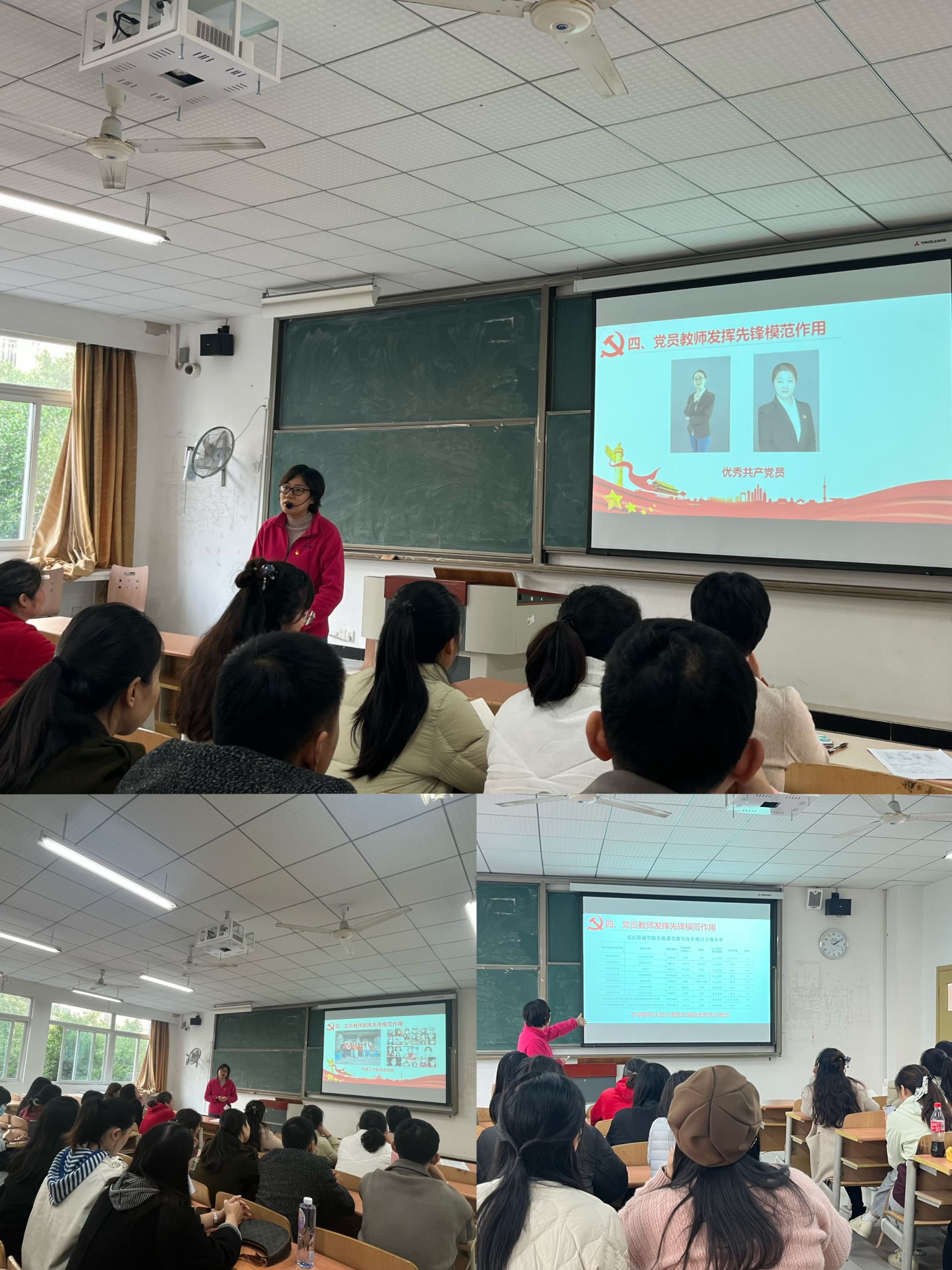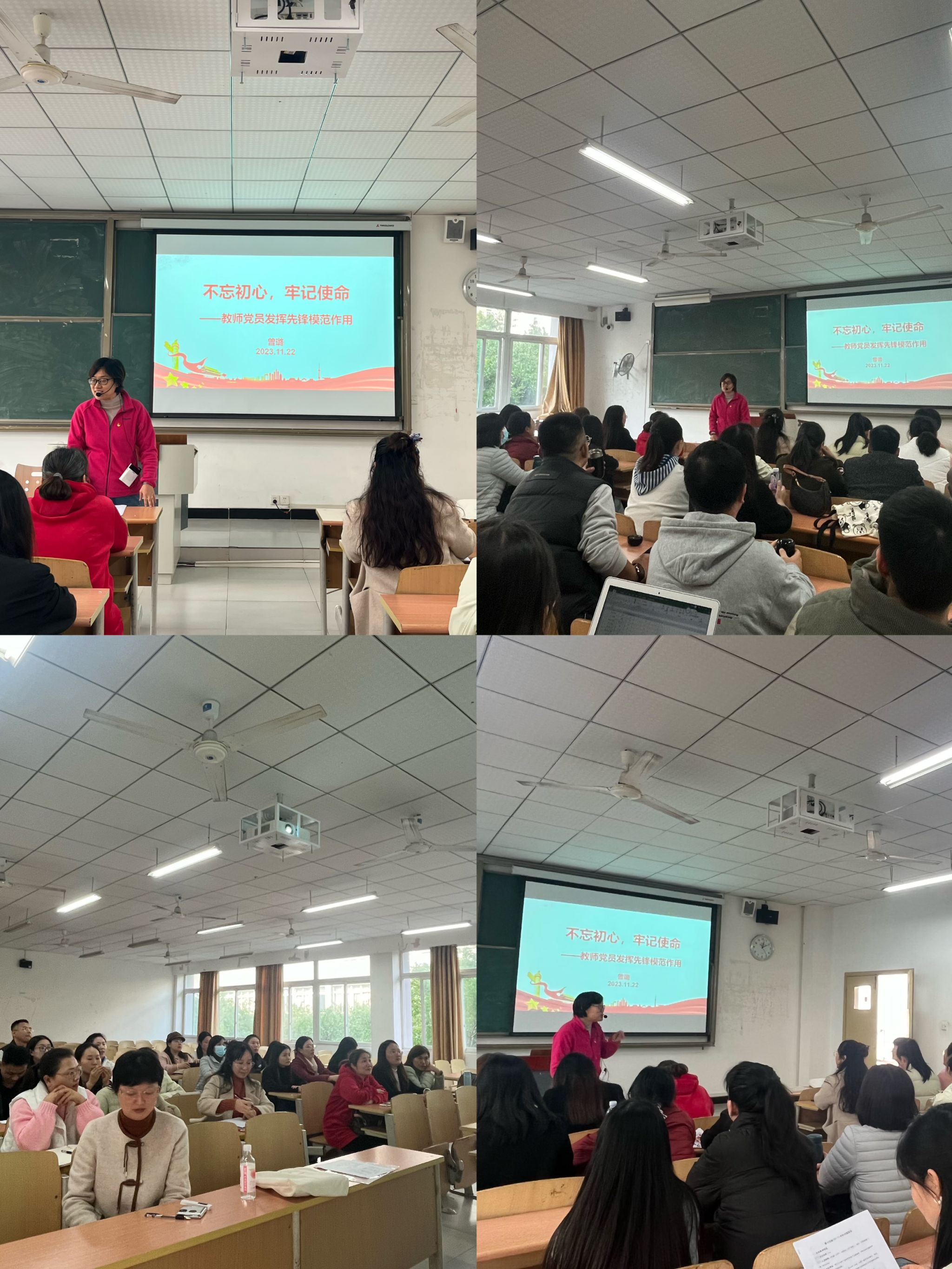 曾璐同志结合实际案例分析了党员老师如何发挥先锋模范作用,分享了部分党员老师教学中的重要成果。曾璐同志指出,用党的理论武装自己的头脑绝不是一句可有可无的空话,而是我们党的领导和推进社会主义现代化实践得出的结论,是把我们的事业全面推向二十一世纪的需要,一名合格的党员教师想要保持先进性,就必须时刻注意学习,全面提高自身素质。在课程改革的今天,教育观念、教学方法、专业知识、业务能力都必须紧随时代车轮,不断地更新、拓展、充实、提高。曾璐同志强调,党员教师必须成为相关领域的带头人,成为教学队伍的排头兵。