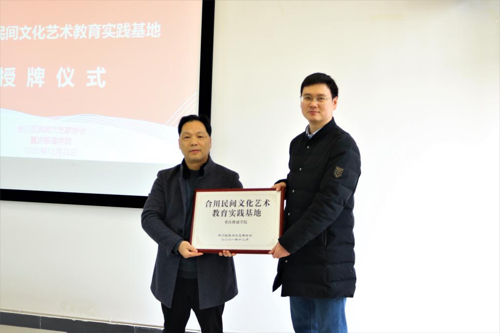签约仪式上,校长助理张衍学和合川民协主席兰梦宁代表双方签署校地合作协议。兰梦宁主席和位光辉院长代表双方为移通学院“合川区民间文化艺术教育实践基地”授牌。标志着我校与合川区民间文艺家协会在校地合作、产教融合等多方面合作关系的正式建立。