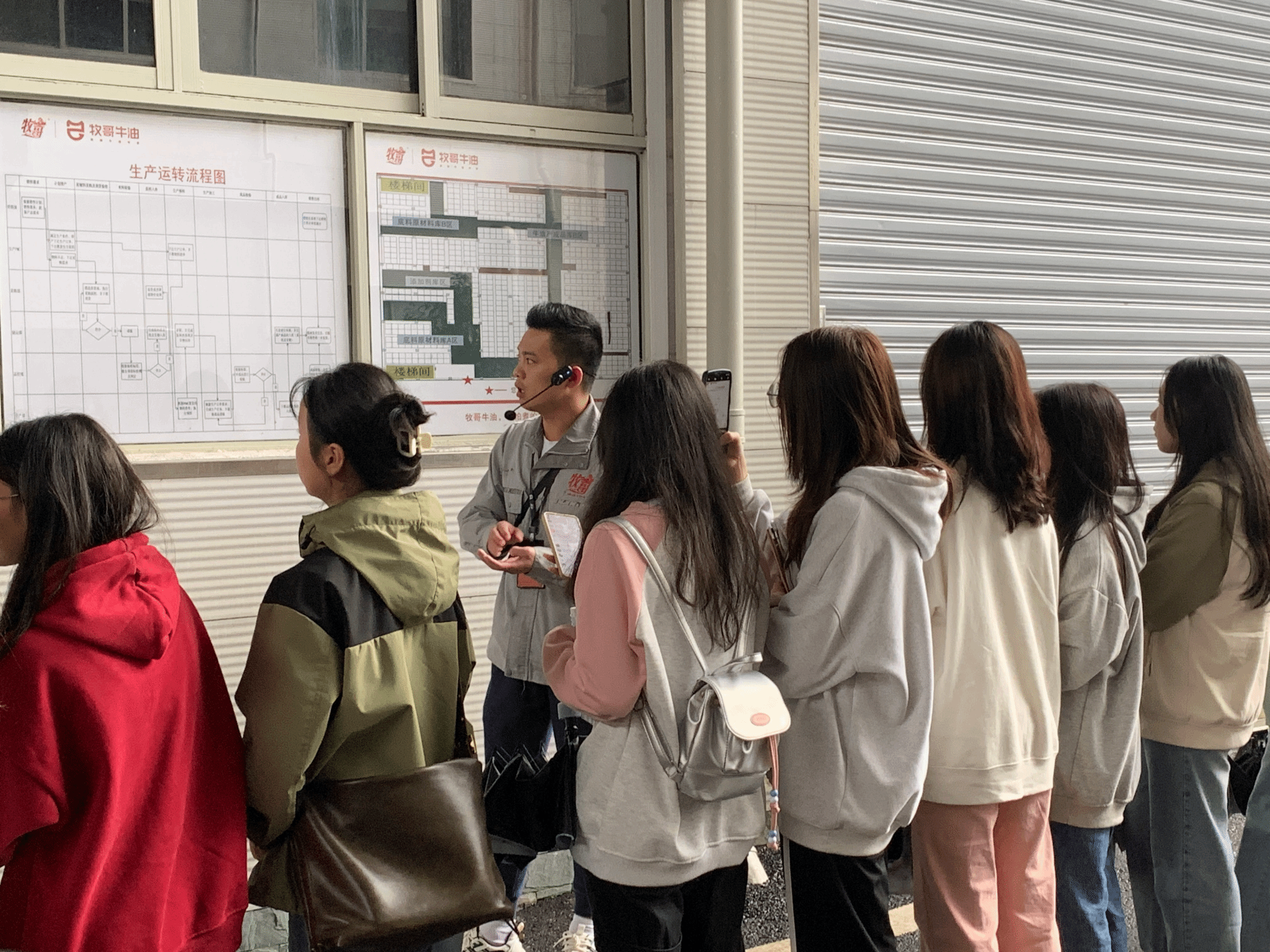 重庆牧哥食品有限公司自1984年创立以来,始终致力于火锅牛油的标准化生产和品牌化运营,是火锅产业链的领导者之一。该公司以“质”造中国好底料为愿景,以传承和发扬火锅文化为使命,积极倡导绿色、健康、安全的食品理念。在这次实践活动中,同学们有机会深入了解企业的运作模式、熟悉企业文化,并实地了解底料车间、物流板块以及人力、财务、营销等板块的运作情况。