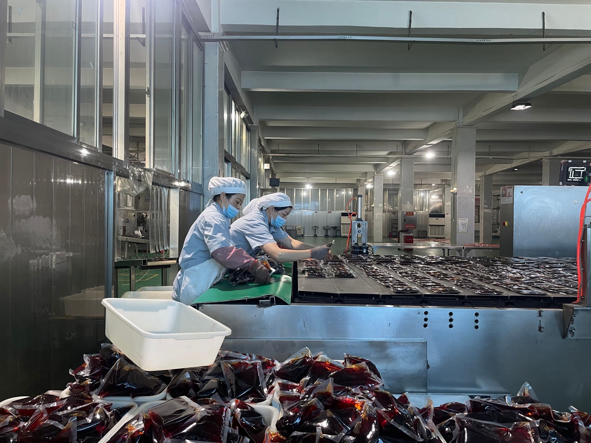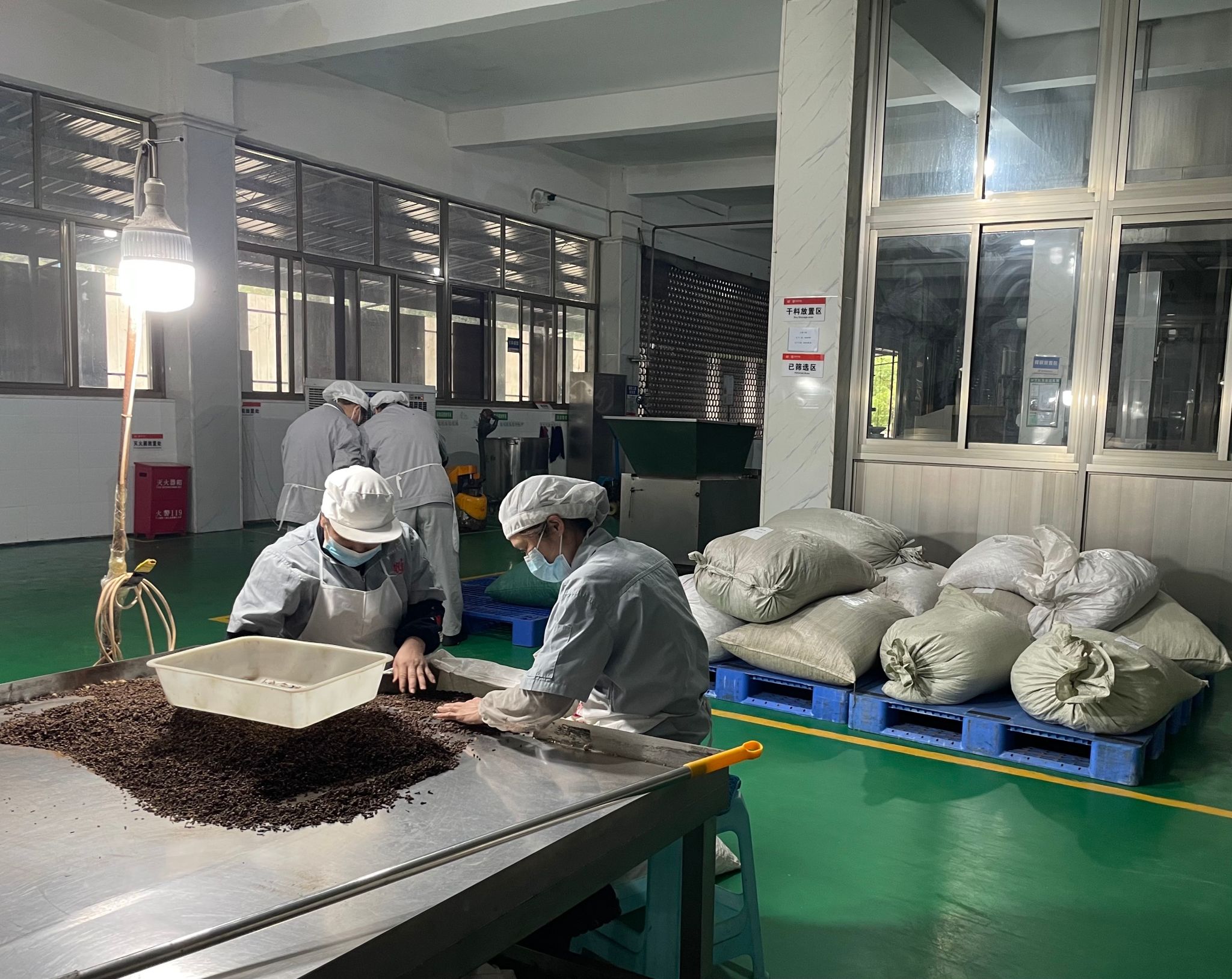 随后,在技术人员李佳的带领下来到了底料车间现场了解了每一步工艺的细节和注意事项,以及如何控制质量的关键点。同学们全面而详细地了解了香料从筛选、自动炒制、装袋、凝固成成品流水线制造工艺过程。在这个过程中,同学们不仅了解了底料的生产流程和质量控制方法,还对香料的特性及其在火锅中的作用有了更深入的了解。