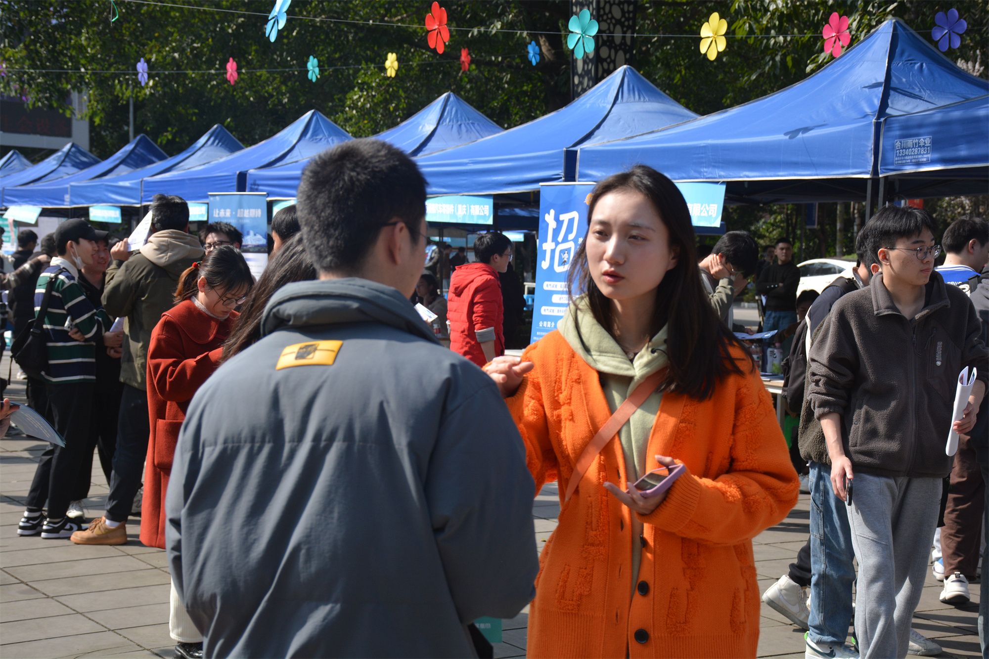 为切实做好我院毕业生就业工作,促进毕业生更高质量更充分就业,提升毕业生求职满意度,为2024届毕业生和用人单位搭建更便捷的交流平台,重庆移通学院智能工程学院于2024年3月11日15:00-17:30在南校区黄桷树广场举办2024“智汇台州·全国高校巡回招聘”暨重庆移通学院智能工程学院春季双选会。本次双选会共邀请了49家用人单位,累计提供1788个就业岗位,1000余名学生参与到此次双选会中选岗求职。