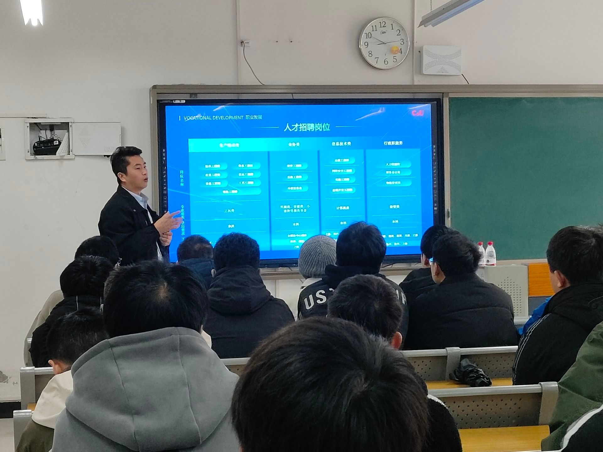 本次双选会不仅为毕业生提供了一个展示自己才能的平台,也为用人单位提供了一个寻找优秀人才的机会。参与此次双选会的公司涵盖了科技、金融、教育等多个领域,为毕业生提供了多样化的就业选择。人本股份有限公司并于3月12日14:00于竹逸B301教室开展单场宣讲会,60余名同学参加,并进行面试。