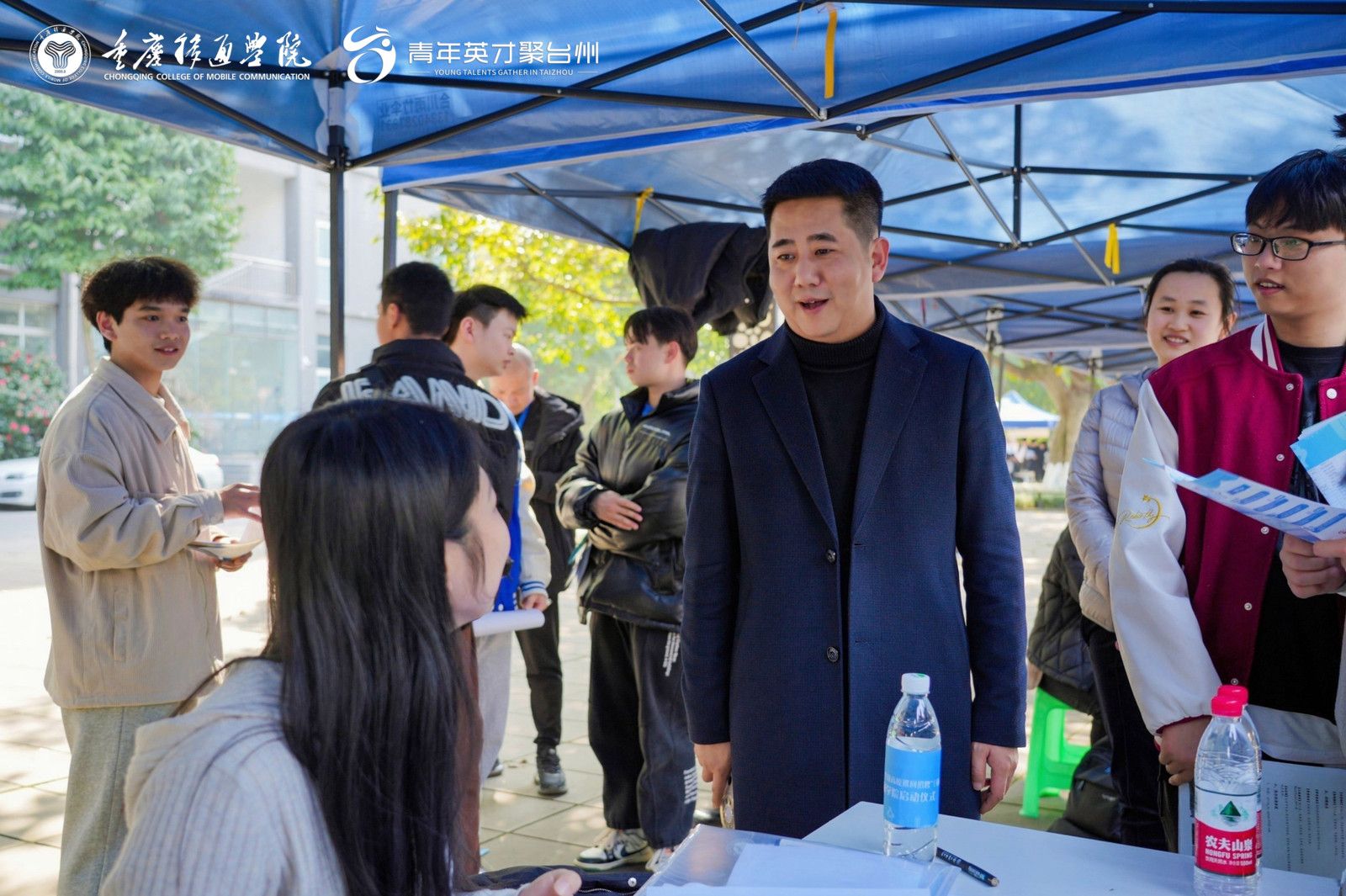 浙江省台州市路桥区人力资源和社会保障局党组成员、副局长徐玮玮,浙江省台州市路桥区人才交流服务中心主任钟灵建,浙江省台州市路桥区就业事务中心主任陈芳,重庆移通学院副校长陈仲华、就业创业指导与服务中心副主任佘桂隆、就业创业指导与服务中心科长车丽芳、就业创业指导与服务中心华雯老师、智能工程学院院长党晓圆、学工副院长祝玮、就业创业办公室主任扶小琴、全体毕业班辅导员来现场指导工作,引导学生积极就业。
