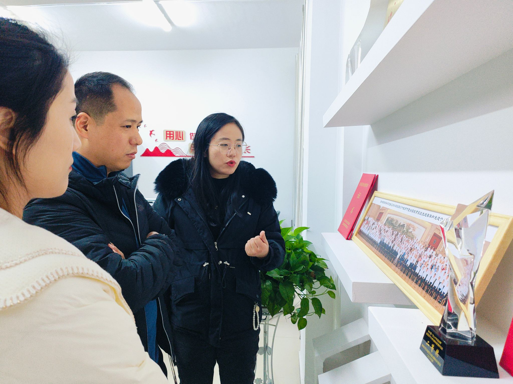 在参观过程中,付妍妍老师详细介绍了工作室的建设背景、发展历程、主要工作内容以及取得的成效。成员们认真听取了介绍,并就未来工作室的发展改进方向等进行了深入交流和探讨。大家纷纷表示,付妍妍辅导员工作室在思想政治教育、学生管理等方面有着丰富的经验和做法,值得学习和借鉴。