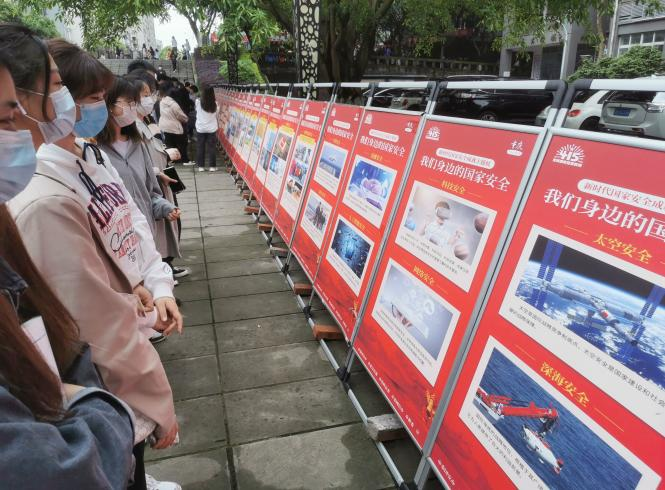 4月15日下午在学校黄桷树广场组织开展了全民国家安全教育日普法宣传活动。通过LED显示屏播放相关内容、悬挂横幅、国家安全成就主题展等形式,向师生宣传了新时代国家安全发生的历史性变革、取得的历史性成就、国家安全法律法规。