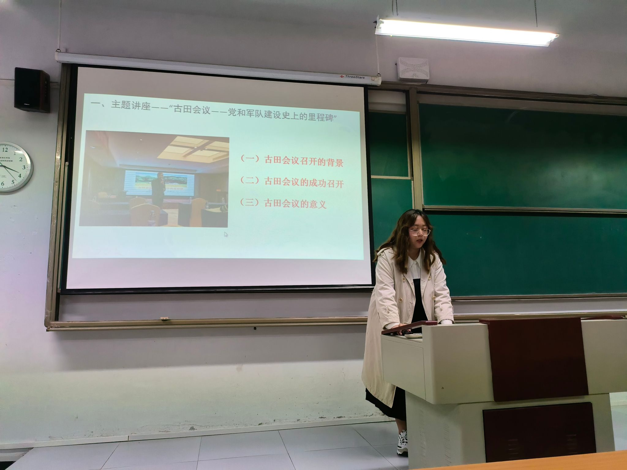袁明君老师精心准备,向与会教师详细介绍了本次“高校思政课教师爱国主义教育社会实践”研修班的学习内容。研修班的学习主要分为两大板块。在第一板块——理论学习中,会议组荣幸邀请到了原龙岩市委党校常务副校长江维力教授,他为我们深入浅出地解读了古田会议精神。江教授从古田会议召开的历史背景出发,详细梳理了会议成功召开的经过,并深入剖析了其深远意义。同时,江教授在讲解中特别引用了习近平总书记的重要论述:“历史告诉我们,党指挥枪是保持人民军队本质和宗旨的根本保障,这是我们党在血与火的斗争中得出的颠扑不破的真理。”这一深刻论述,不仅揭示了党对军队绝对领导的必要性,也凸显了古田会议精神的时代价值。