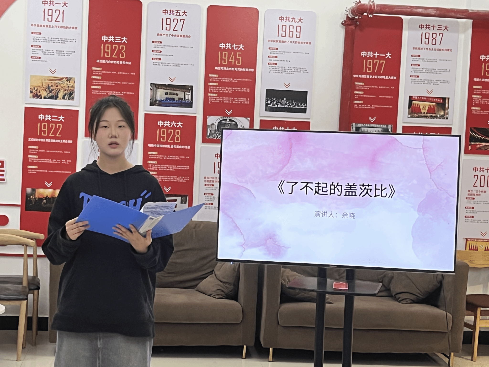 比赛过程中,选手们充分展示了自身的才华与实力。贺佳龙同学带来了他阅读《了不起的盖茨比》这本书的体会:“书中细腻的文字让我回忆起自己成长的点点滴滴,那些曾经的迷茫、挣扎与孤独都仿佛得到了慰藉。”作者对于成长的独到见解让我重新审视了自己的过去与未来,成长虽然伴随着孤独,但正是这些经历塑造了我们坚韧的性格和独特的视角。这本书教会了我如何在孤独中寻找力量,勇敢面对未来的挑战。刘江民同学分享了《月亮与六便士》读后感,深刻探讨了理想与现实、艺术与生活之间的冲突与追求,它警示人们在追求个人梦想时,不应被世俗的价值观所束缚,应勇敢追寻内心的真实声音,这本书的意义在于,它鼓励人们勇于面对内心的渴望,不畏艰难,坚持追寻自己的理想。多名同学围绕“典耀中华,传承有我”这一主题,选手们通过深入剖析、引经据典、抒发情感等多种方式,完满地诠释了对《革命者》《中国通史》等读本,全面而深入地诠释了中华文化的独特魅力和时代价值。