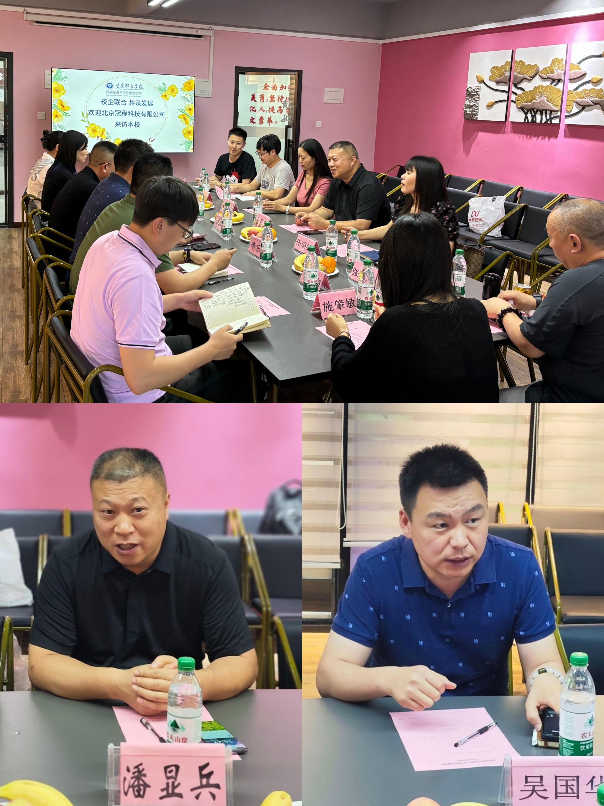 北京冠程科技有限公司董事长吴国华、重庆易阅科技有限公司总经理李乐康、营销部经理王斌、研学部经理胡丹,学院院长潘显兵、教学副院长刘贵容、学工副院长任瑞娟、学院就创办主任张婷、学院专业负责人王哲,教师代表王华、施肇敏、杨志伟出席会议。会议由潘显兵院长主持。