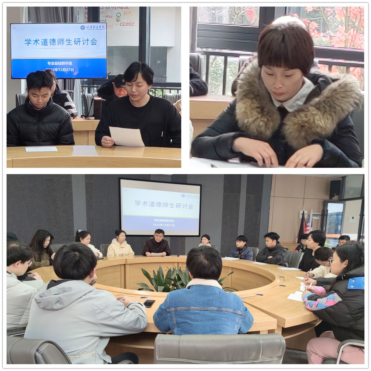 12月27日,专业基础教研室在南湖书院圆桌会议室举办了“学术道德师生研讨会”。教研室主任席兵解读了学术不端行为的概念、表现、不良影响以及学术不端处理相关文件,他结合具体事例,从细节入手对易出现的学术不端行为进行了深入分析。随后,与会师生就学风培养、论文写作、项目研究、资源检索等方面学术不端行为展开了热烈讨论。大家纷纷表示,不仅要提升专业能力,更会守卫道德底线,将学术道德规范贯穿教育全过程。