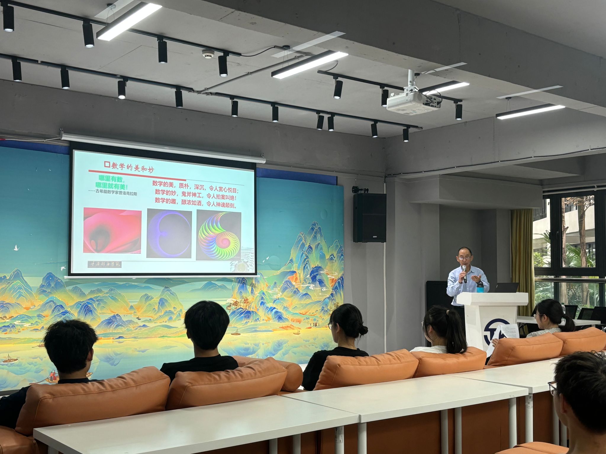 随后,杨教授引领同学们深刻领悟数学对于推动其他学科发展的强大引领与支撑作用。他强调,数学是自然科学之基,正如达芬奇所言:“一切都与数学有关,有些更是‘性命攸关’”。在医疗CT、地球勘测、大数据、人工智能、图形处理、金融经济等领域,杨教授展示了数学如何作为一座坚实的桥梁,连接起理论与实践的鸿沟。除此之外,还列举了一系列生动案例,如海滩占位问题的解决、数学助力华为实现技术赶超等,让同学们直观感受到数学在解决实际问题中的巨大魅力。