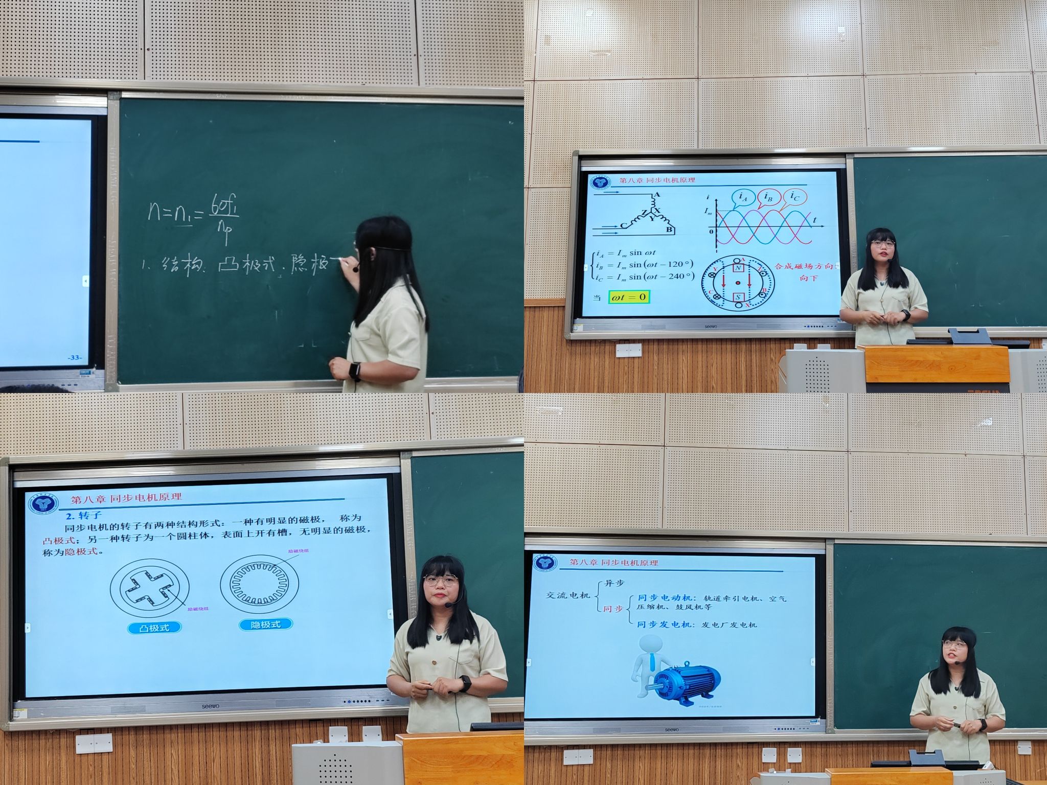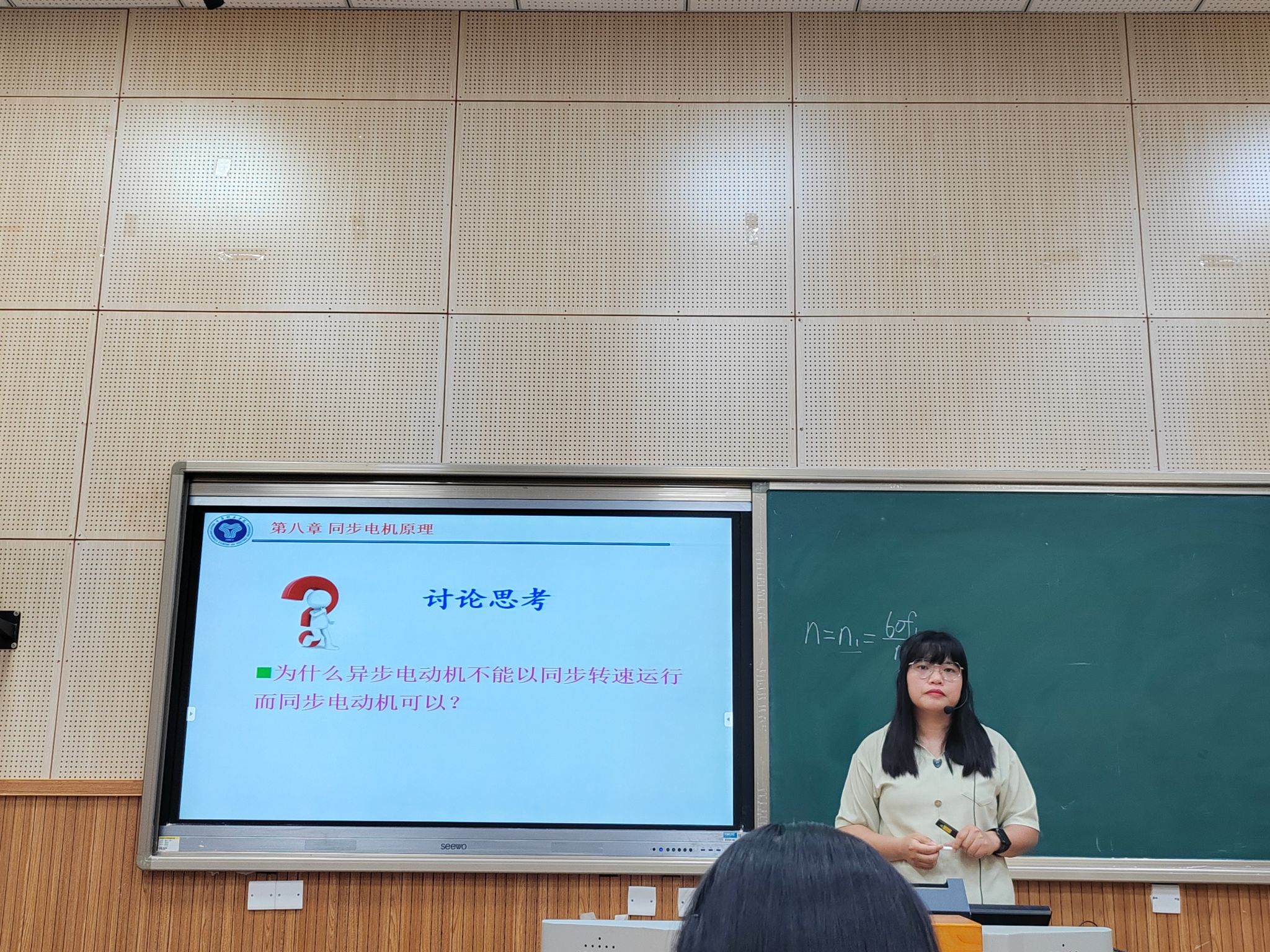 接下来,杨佳义老师利用学习通辅助教学课堂,与同学们进行互动。通过在学习通上发布的同步电机原理随堂测试小视频提问,以巩固理论所学,使学生们更好的融入课堂,激发学生的学习兴趣并引发学生积极思考,让学生们乐在其中。最后,杨佳义老师以讨论思考作为本次课程的结束——为什么异步电动机不能以同步转速运行而同步电动机可以?以问题的方式将本次课程内容与前面章节所学的异步电机知识点相结合,进行深入的对比、分析和应用,从而加深对两种电机技术的理解和掌握。同时,这些问题也能够激发学生的思考和讨论,提高他们的学习积极性和创新能力。