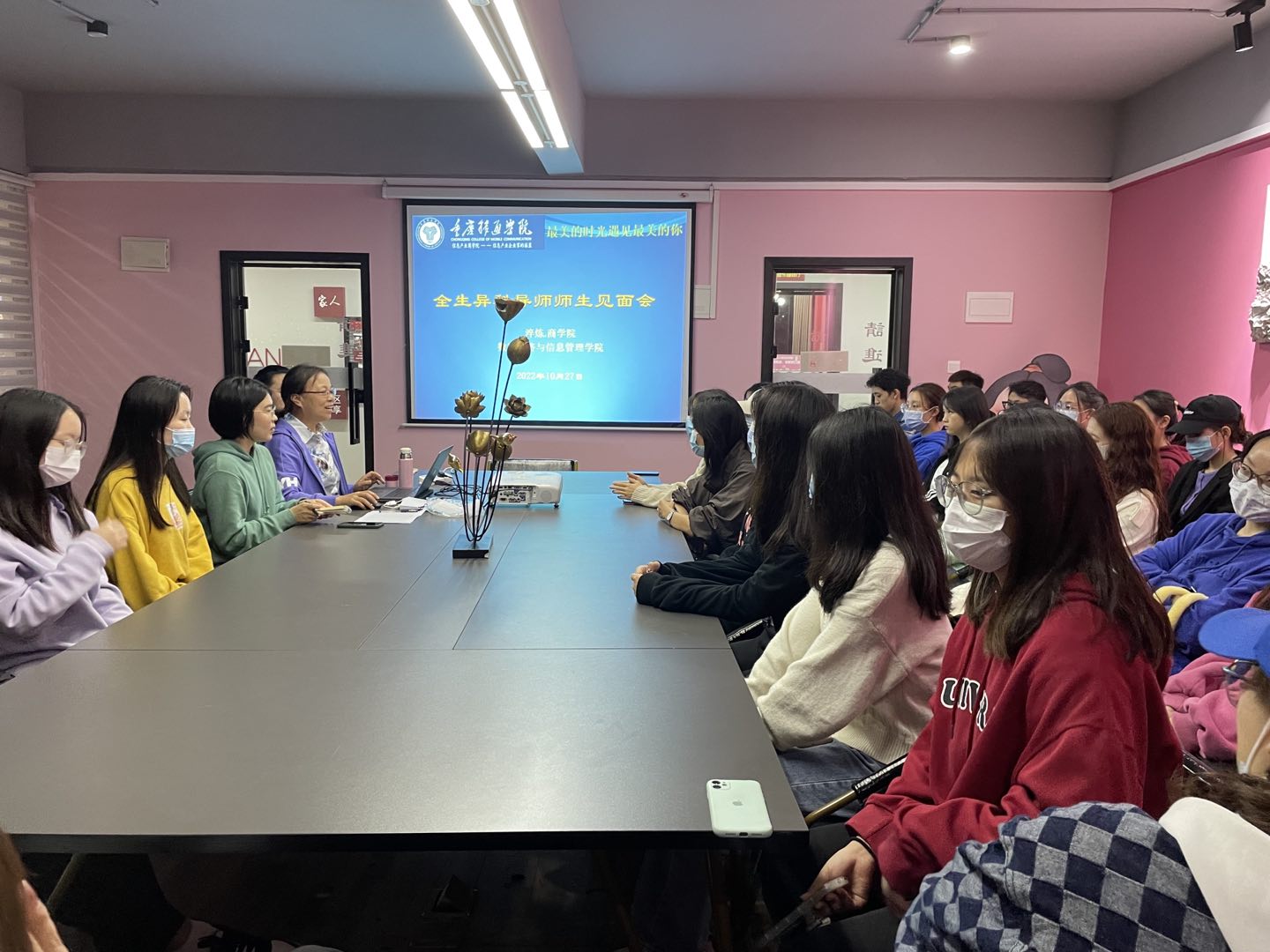 为促进我校全生异科导师与班级同学之间的交流,引导学生积极参与各类活动,明确大学期间学习与生活的目标与方向,异科导师李红艳老师和辅导员张竞艺老师携淬炼·商学院2022级财务管理专升本6-7班异科班全体成员于10月27日晚在爱莲书院多功能厅进行了“全生异科导师师生见面会”为主题的首次见面活动。