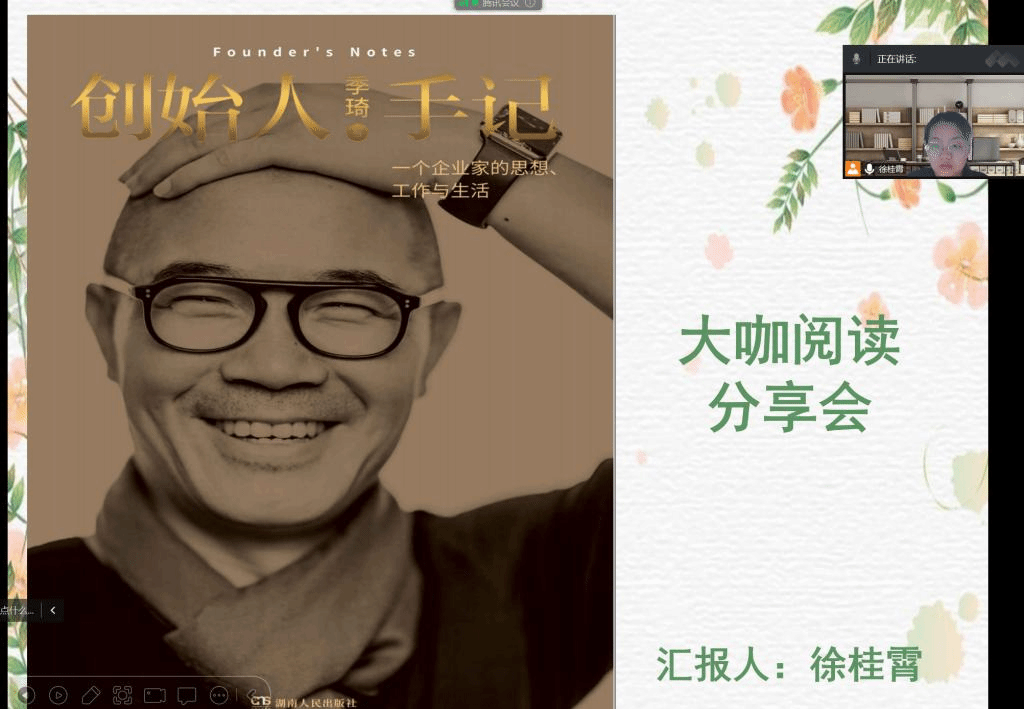 谭春莉老师分享的书籍是《褚时健传》,她说到,这本书给我留下很多深刻印象,比如:要有自己热爱的东西,知道什么是好东西,其实褚时健是一个很好的产品经理,任何时候他比谁都知道好产品是什么样的,如何才能满足做出好产品的要求。人生有高低起伏,往前看,不要回头,特别是低谷阶段不能回头,走出来后可以回头看,但那叫总结和复盘。