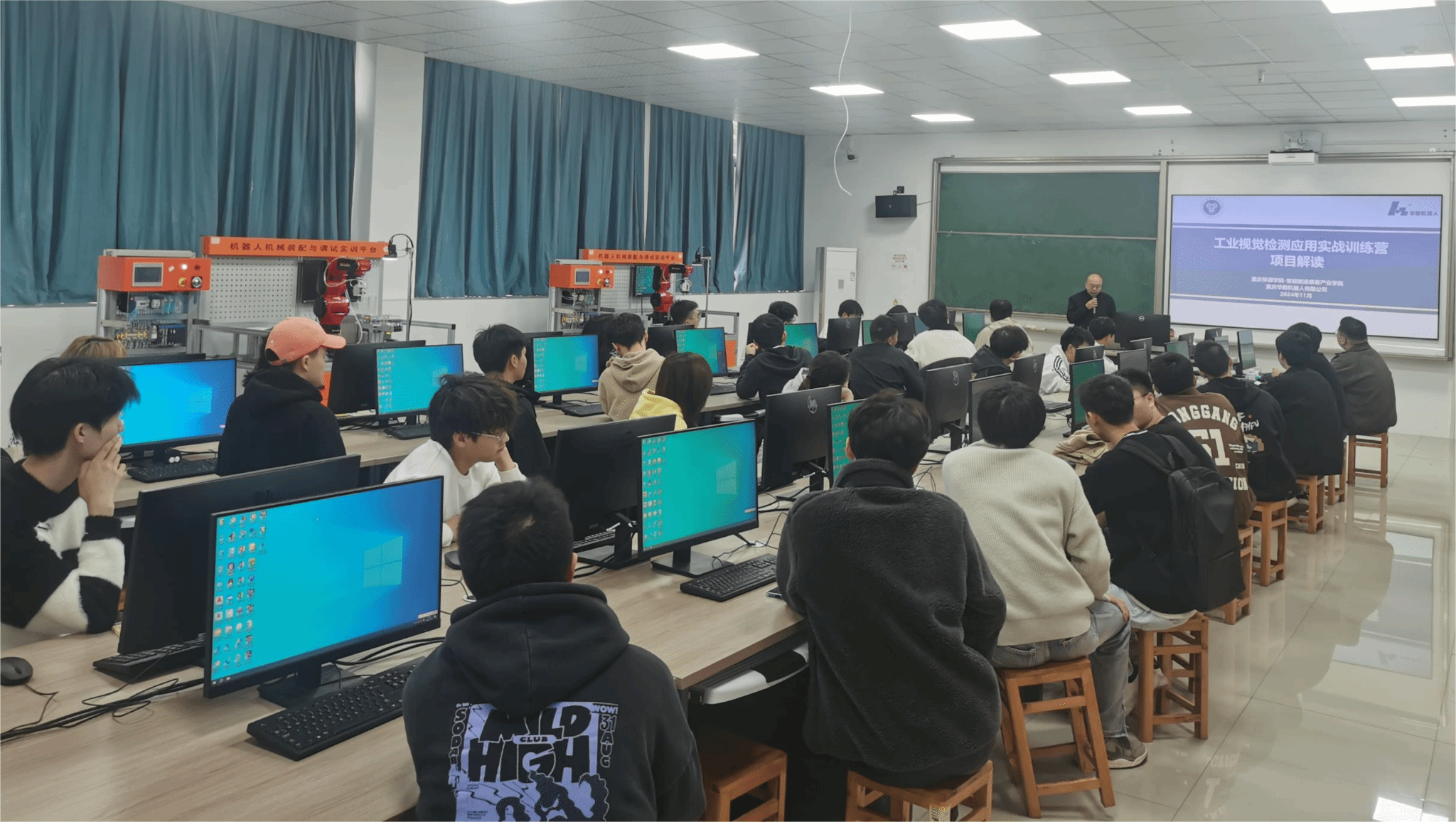 为积极响应国家制造强国战略,深化学校“四位一体双院制+特色课程”的人才培养模式,推动“新工科”建设,智能工程学院秉承“产教融合、协同育人”的理念,依托智能制造装备产业学院的平台优势,于11月13日、15日和20日,成功举办了三期“工业视觉检测应用实战营”。活动面向全校对工业视觉检测领域感兴趣的学生,旨在探讨工业视觉技术的理论与实践相结合,以提升学生的专业素养和创新能力。
