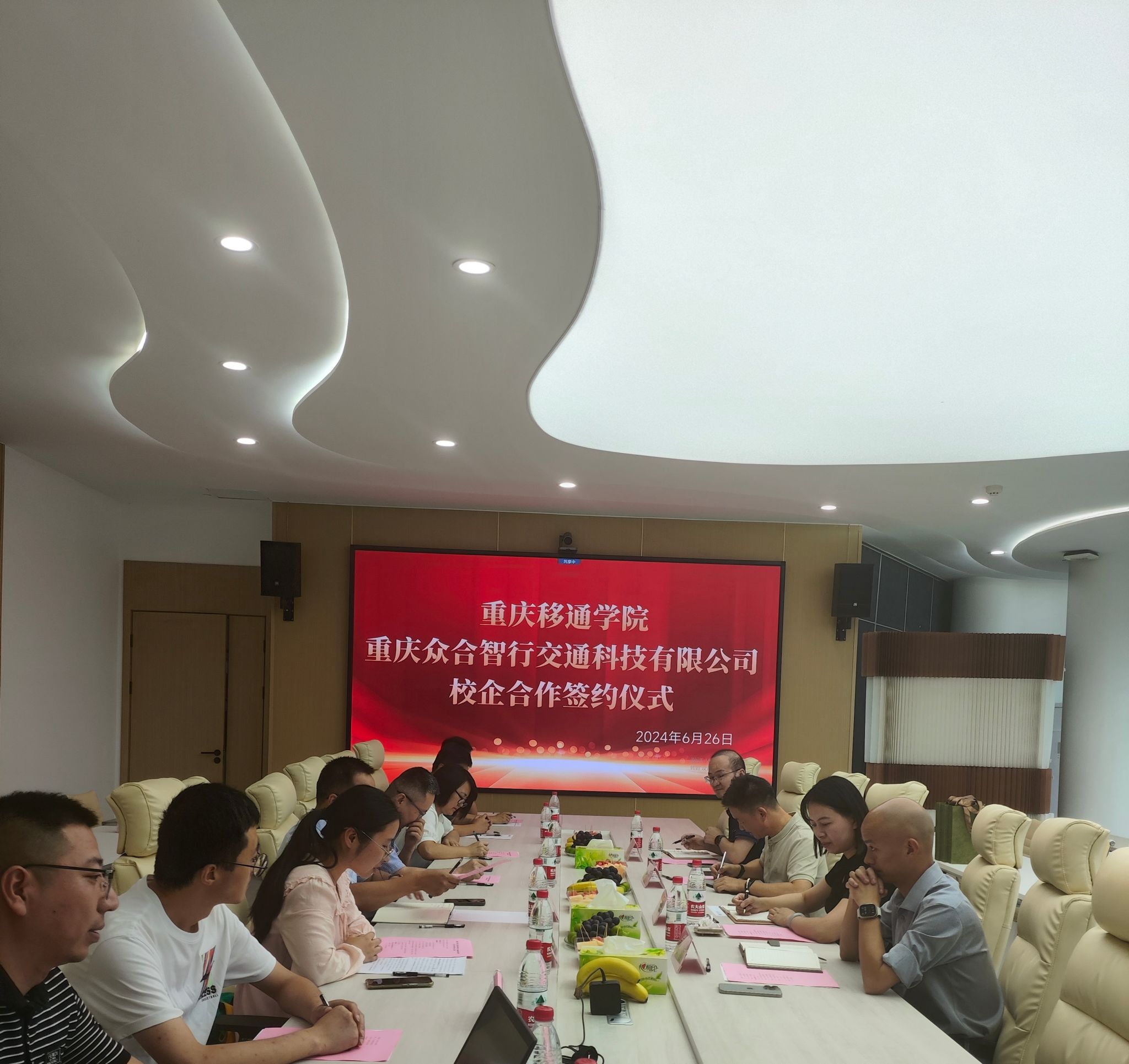 为进一步加快产教融合发展,推进校企深度合作,重庆移通学院与重庆众合智行交通科技有限公司在天空书院云端会议室成功举办了校企合作签约仪式。此次合作标志着双方在深化产教融合、促进智慧交通领域人才发展方面迈出了坚实的一步。重庆众合智行交通科技有限公司总经理周根火、人力行政中心经理江亚、技术中心经理陈涛涛、高级项目经理梁波,以及重庆移通学院副校长张衍学、发展规划与科研处副处长刘建川、智能工程学院院长党晓圆、副院长李洁、智能轨道教研室主任冯铁成等出席了此次仪式。