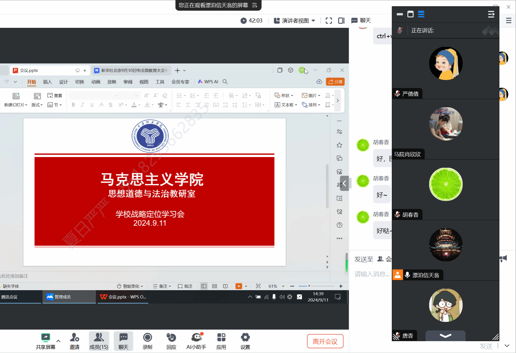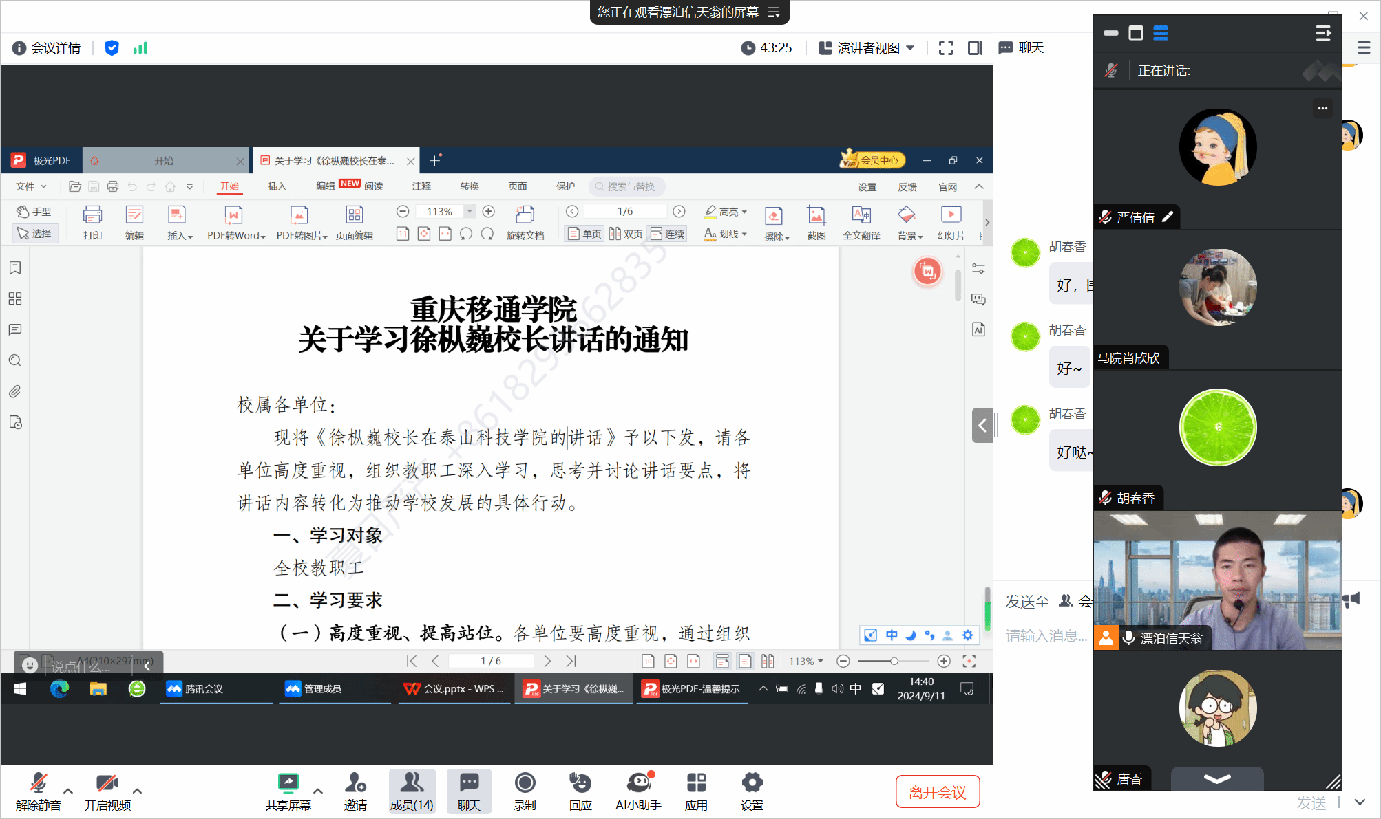 会议伊始,杨勇老师围绕学校的战略定位,对学校的人才培养模式、办学愿景等进行了全面而深入的介绍。他详细阐述了学校“四位一体(完满教育*通识教育*商科教育*专业教育)双院制(生活在书院*专业在学院)+特色模块”的人才培养模式,注重培养具有扎实的自然科学、人文社会科学基础知识,较强的综合素质、国际视野、创新精神、实践能力和竞争优势的高情商、懂管理的应用型人才,我校正以坚定的步伐,致力于成为“双一流之外的首选大学”。随后,与会老师们一起学习了徐枞巍校长相关讲话精神。徐校长在讲话中明确指出,要办一所让学生自信、让家长放心、让社会满意的大学。他强调,学生的自信源自于老师的鼓励;家长的放心则来源于学校对学生全面发展的关注;而社会的满意则体现在让学生成长为一个身心健康、人格健康的人。