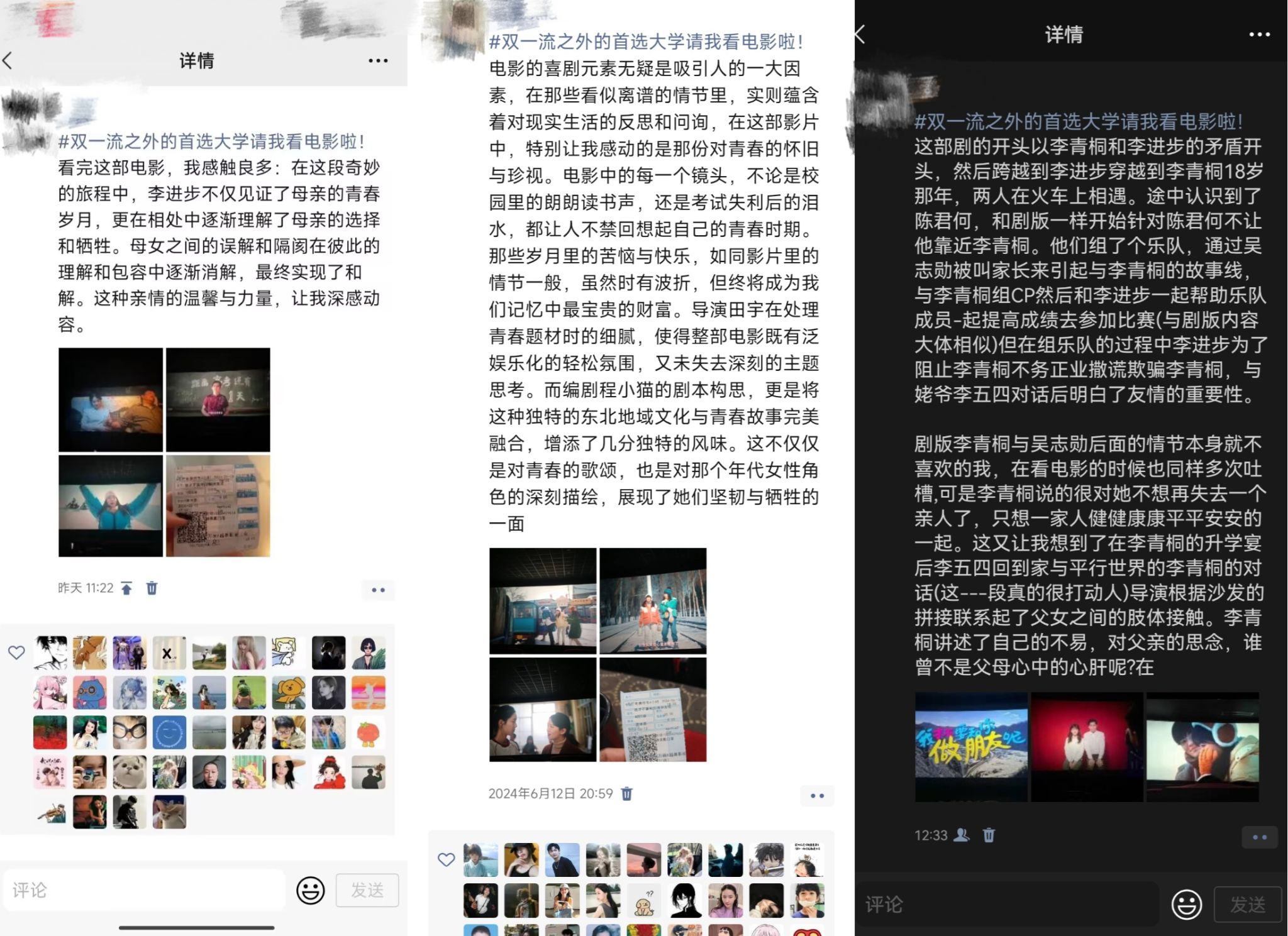 这是一部很温暖的作品,细节很生活化和细致,演员们也都很自然,沉浸度满分。如果一部电影前三十分钟让我笑得非常开心,那肯定能拉近观众与人物的距离,这是电影版最成功的地方,让他们的生活灌注到你对角色的认同中,深度入戏,为后续人生际遇的突变铺垫情感,才会看到结尾那么好哭。贾冰和王皓负责搞笑,庄达菲和陈昊宇负责养颜,演的也都特别好,包括牛莉老师的母亲,每个角色都非常鲜活。影片中的亲情线我深有感触,谁的青春都有迷茫叛逆的时刻,而我很庆幸我和我的爸爸妈妈一直是朋友,我也很想对他们说:很感谢你们十月怀胎让我诞生在这繁华的世间,为我遮风挡雨促我长大成人,接下来的日子我会成为你们遮风挡雨的依靠鸭!