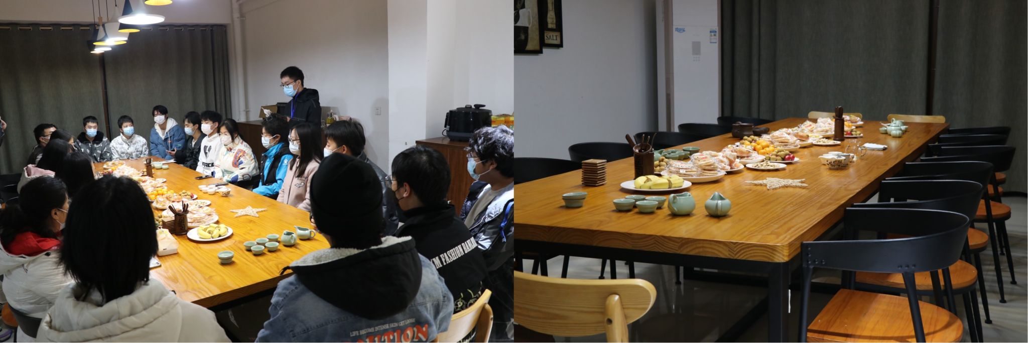 本学期在松格书院功能室等场地多次举办了本学期的共膳日活动,在活动中,学生和老师在愉快的就餐氛围中进行交流,放松身心,贴近生活,师生一起畅聊学习和生活中的趣事,针对学生提出的关于学习中遇到的问题,院长和老师们解答了同学们的疑惑并给予建议,同时了解了学生在生活方面的情况并给予关心。