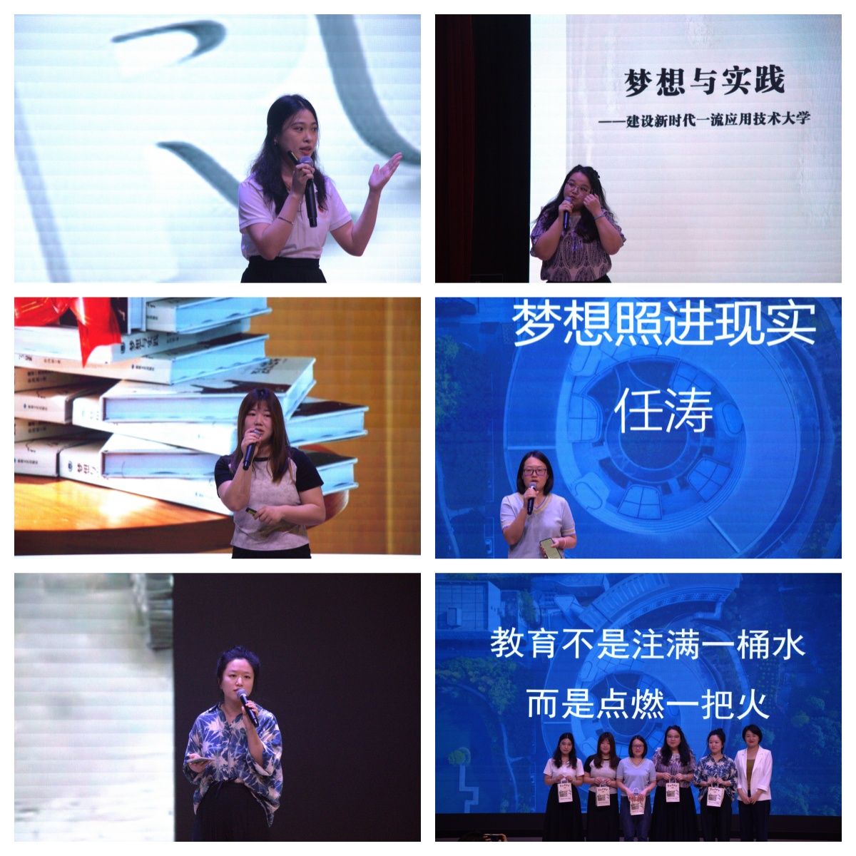 紧接着,活动进入《梦想与实践》读书感悟分享环节。王红洁老师以“梦想”“迷茫”“规则”“能动性”和“实践”为关键词,探索学生人生旅途中的无限可能,激发共鸣;谭穗老师从情怀出发,探讨梦想与实践的关系,强调学校“信息产业商学院”定位及培养高情商经营管理人才的使命;王偲老师深入浅出地分析了梦想与实践,倡议共读,探索知识海洋;任涛老师以“梦想照进现实”为题,结合亲身经历分享成功案例;蒋明迪老师则以“梦在脚下”为主题,展示优秀毕业生风采,诠释追梦路上的坚韧与智慧。