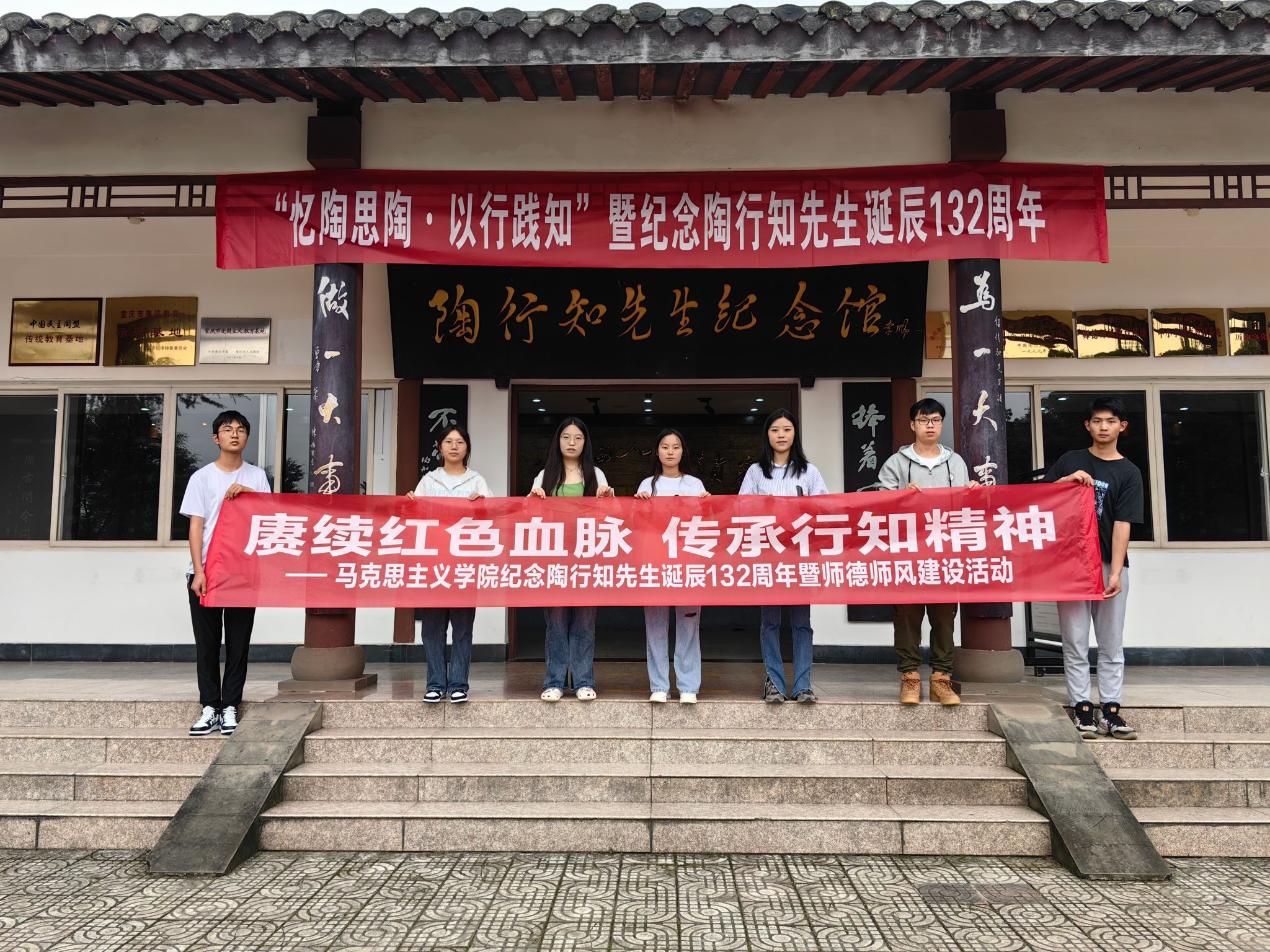 10月18日是陶行知先生诞辰132周年,为深切缅怀陶行知先生,大力弘扬陶行知教育思想,加强师德师风建设,弘扬“捧着一颗心来,不带半根草去”的高尚廉洁精神,同时让学生深入了解行知文化,并践行于日常学习生活中。10月18日下午,马克思主义学院“概论”课教研室组织教师及部分学生代表赴陶行知先生纪念馆开展纪念陶行知先生诞辰132周年暨师德师风建设活动。