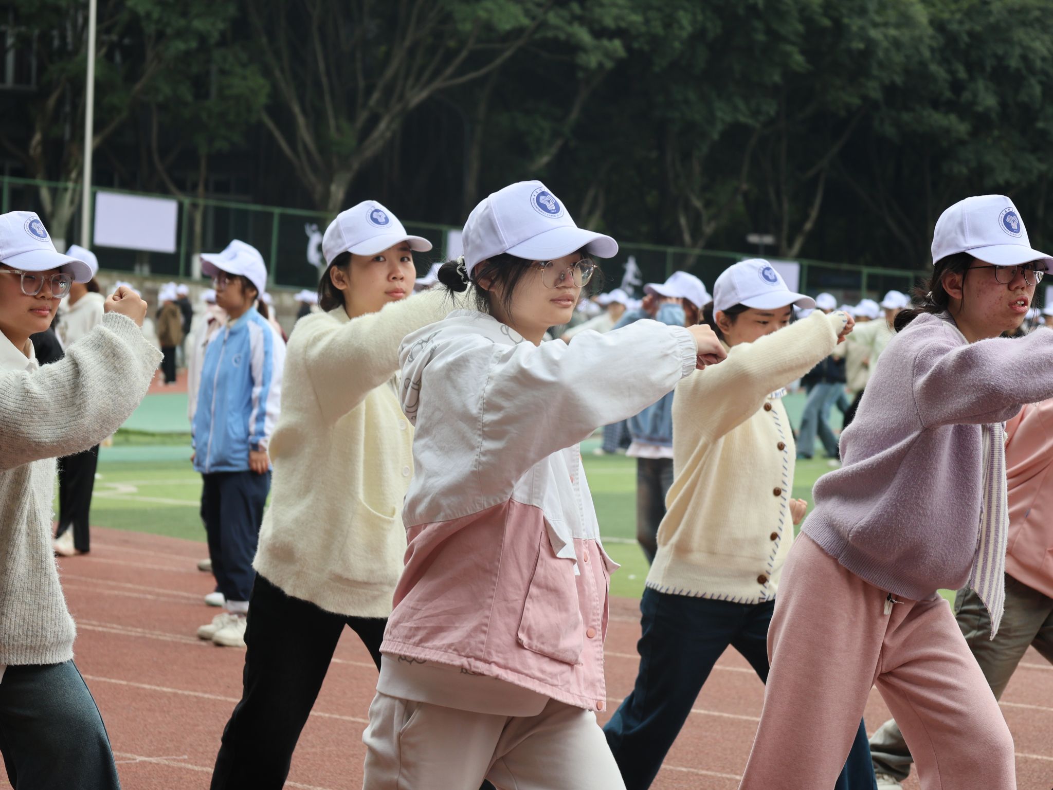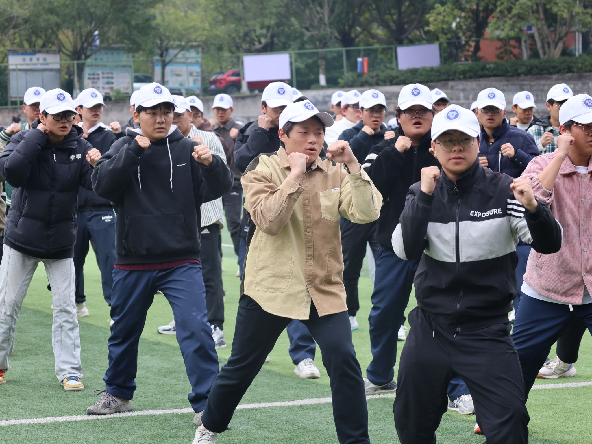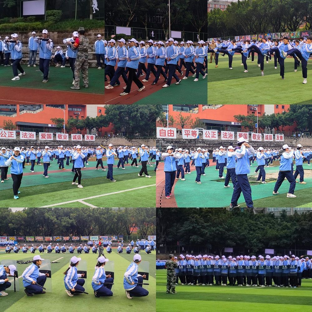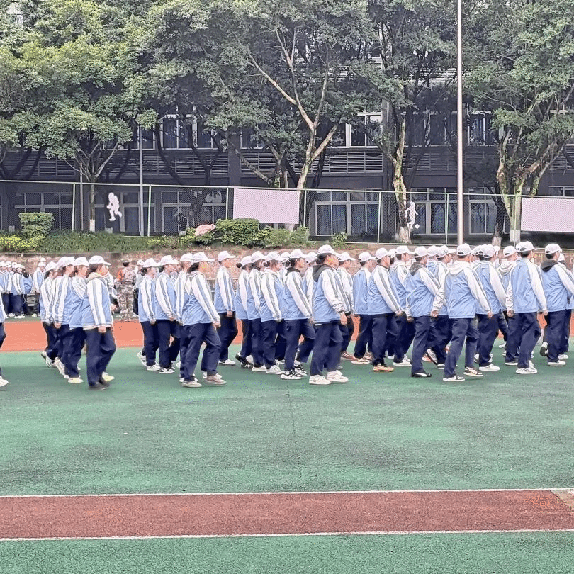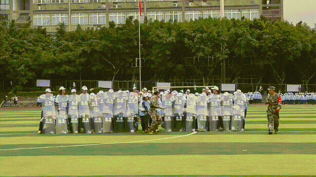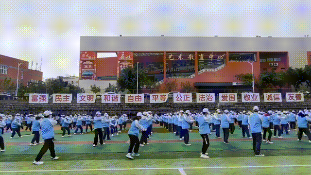 抬腿时带起的风,带过耳畔呼喊的口号,一起卷入尘埃。脚步声“哒哒哒”地砸在地上,格斗招数,手到擒来;军体拳术,气势如虹,连着操场的空气一起颤抖,抬腿、摆臂、落地,行云流水,整齐划一,小tip:别因为走神,而重复动作加加加。