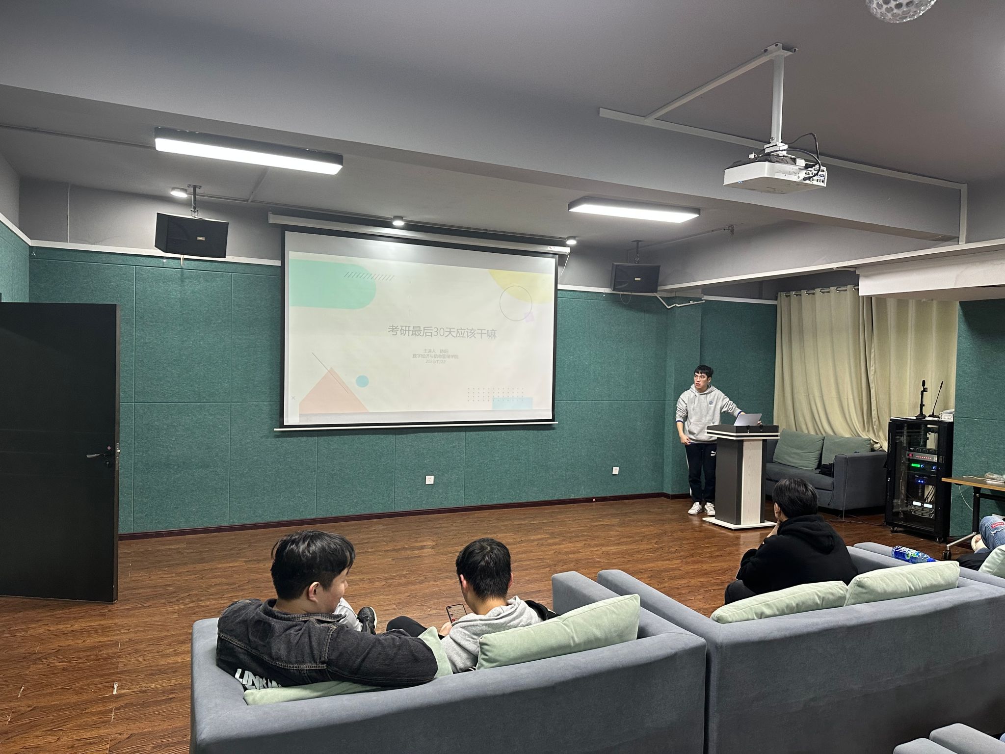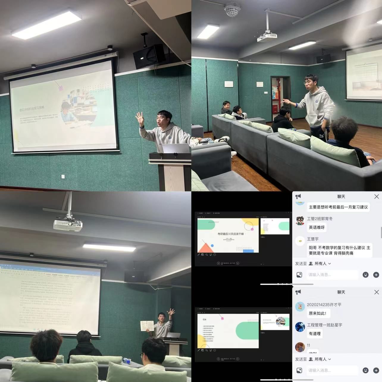 黎明即起,孜孜为善。随着寒冷冬季的到来,2024考研备考也到了最后冲刺的30天,为了鼓舞考生士气,征服考研长征的“最后一公里”,数字经济与信息管理学院于11月22日在爱莲书院多功能影音室展开考研指导交流。此次交流会采取线上线下同步进行的方式,由陈阳老师、杨志伟老师、巫昊老师为考生们作最后30天冲刺的复习策略指导和心理辅导。